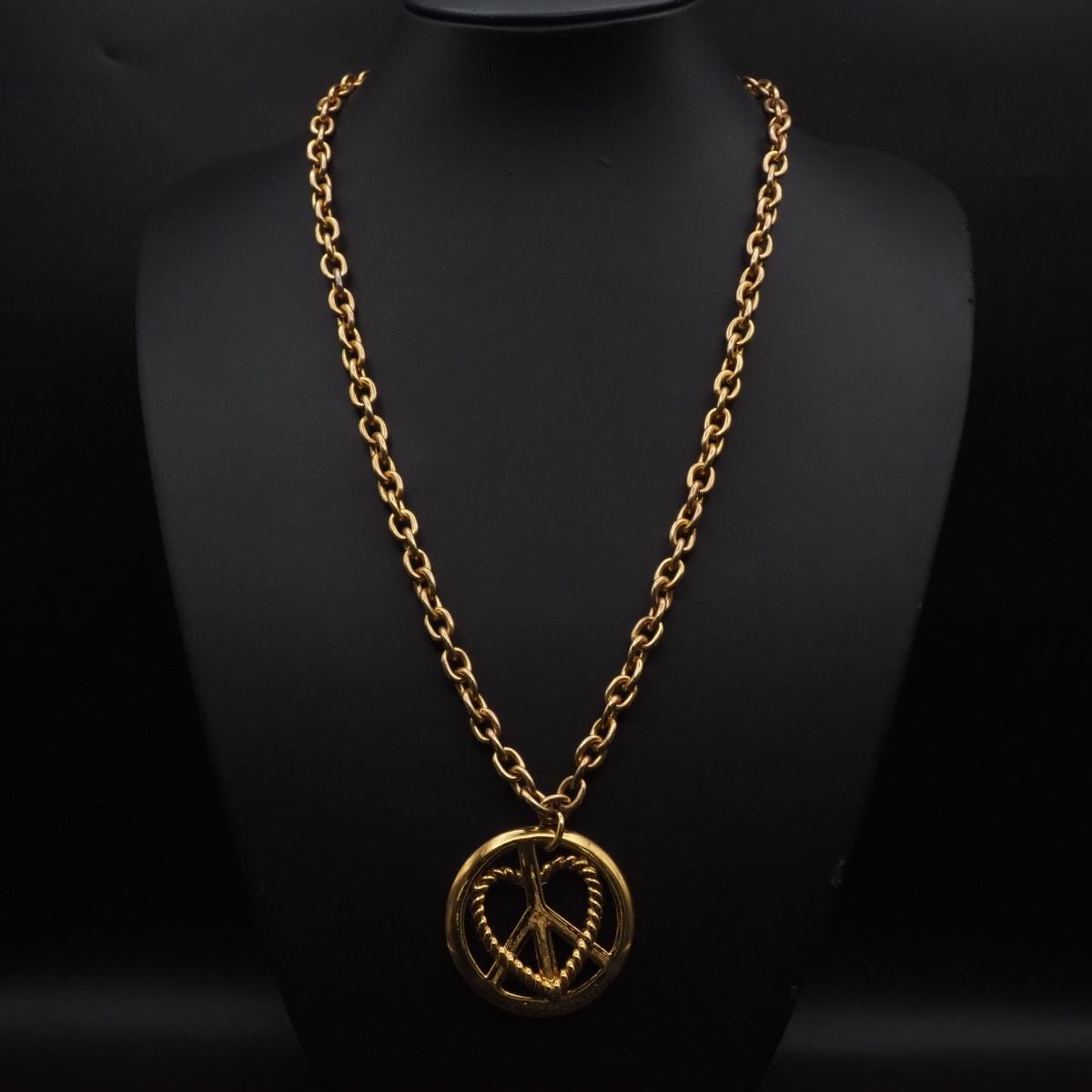G268 MOSCHINO モスキーノ ペンダント ネックレス 大ぶり ラブ&ピース デザイン コスチュームジュエリー
