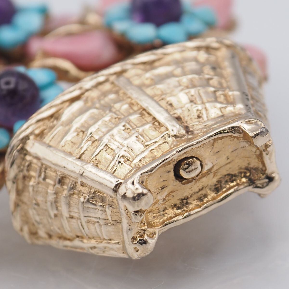 G154 アメジスト ターコイズ トルコ石 等 カラーストーン ブローチ フラワーバスケット ゴールド デザイン コスチュームジュエリー