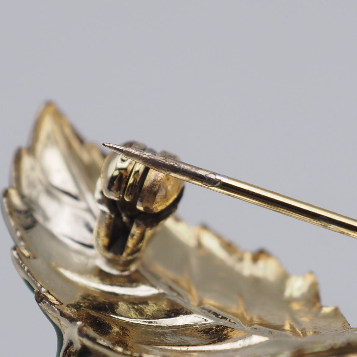 G164 ブローチ フラワー マーブル グリーンエナメル ゴールド デザイン コスチュームジュエリー