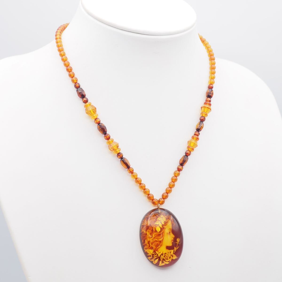 G038 琥珀 コハク ペンダント ネックレス インタリオ彫刻 女性横顔 デザイン