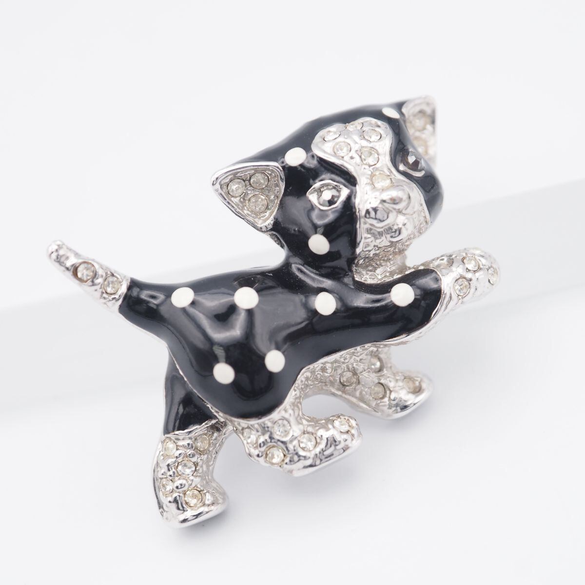 F584 ブローチ 猫 キャット ラインストーン ブラック ホワイト エナメル デザイン シルバー コスチュームジュエリー