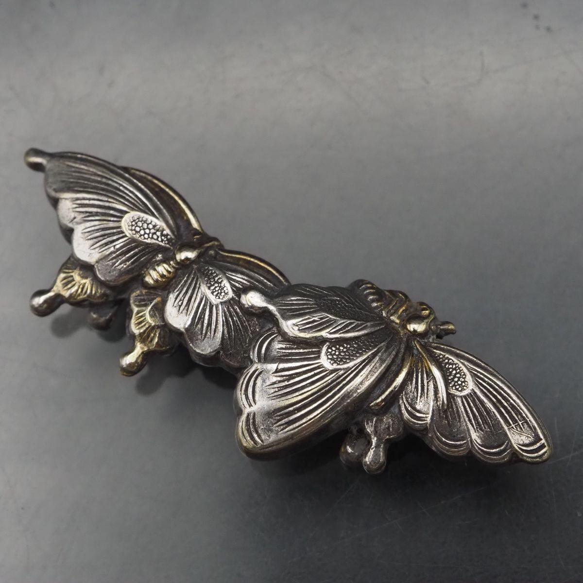 G346 ヴィンテージ 帯留め 蝶 バタフライ ゴールド デザイン シルバー 和装小物