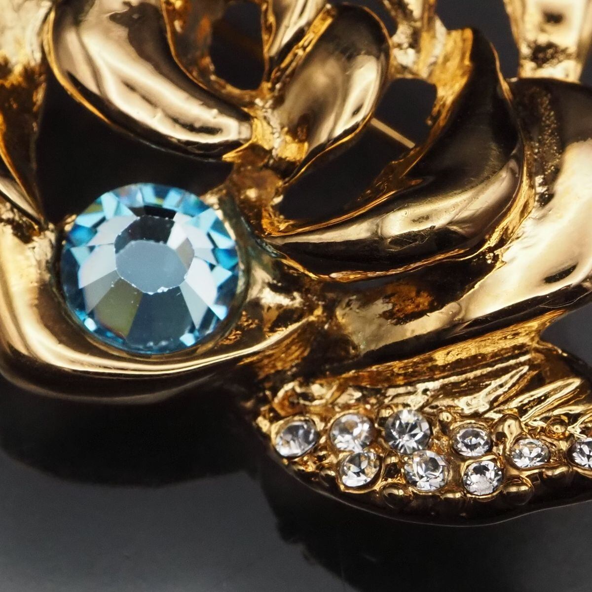 G162 ROSE CLUB ローズクラブ 2006刻印 ブローチ ブルーストーン ラインストーン 薔薇 バラ ローズ ゴールド デザイン
