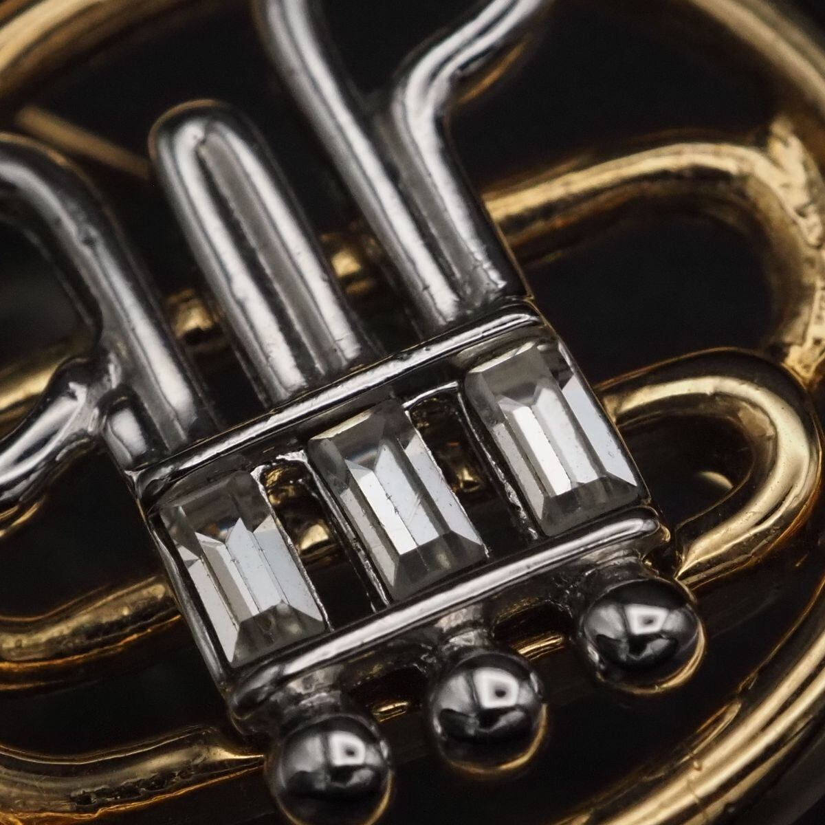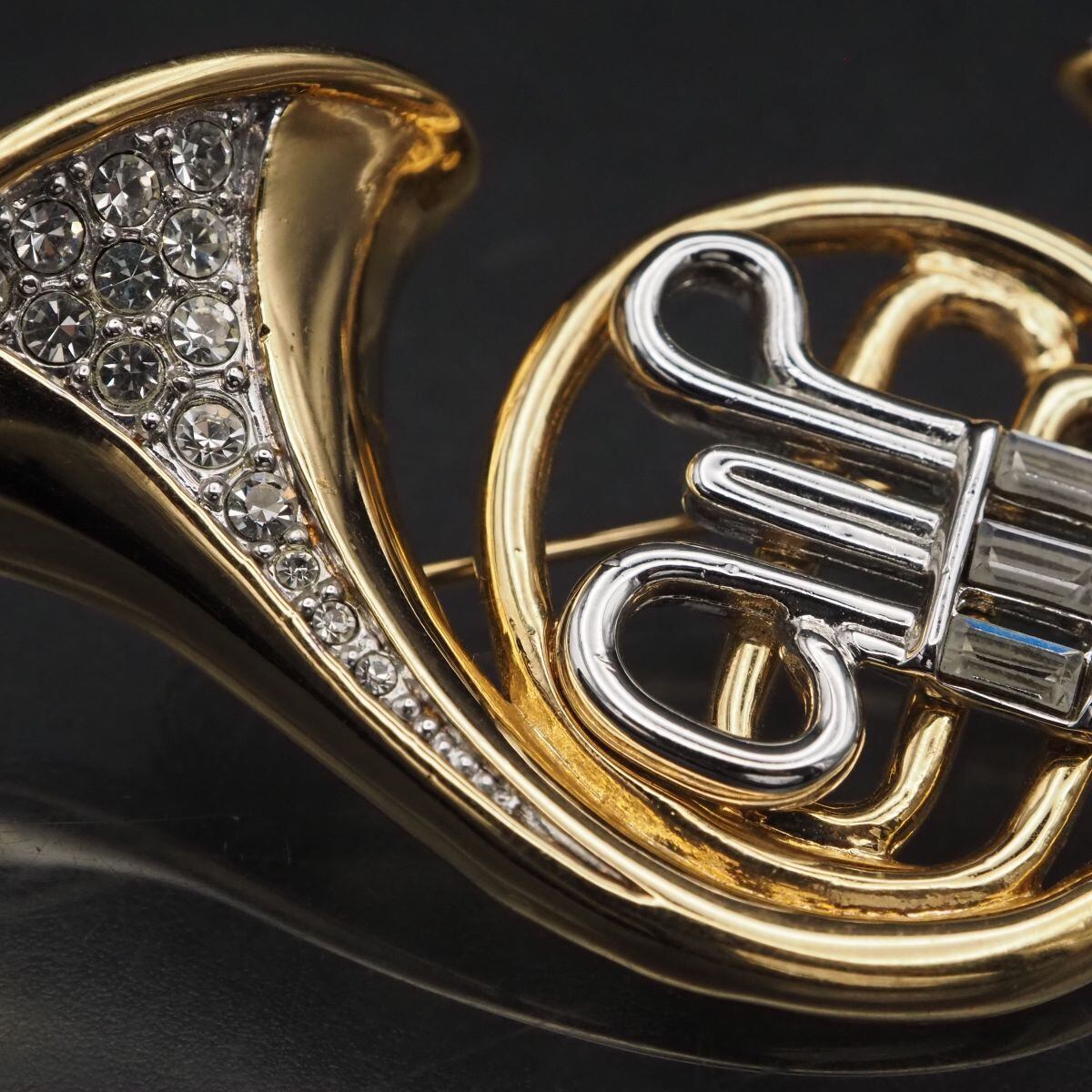 G174 ブローチ ホルン 管楽器 ラインストーン ゴールド シルバー デザイン コスチュームジュエリー