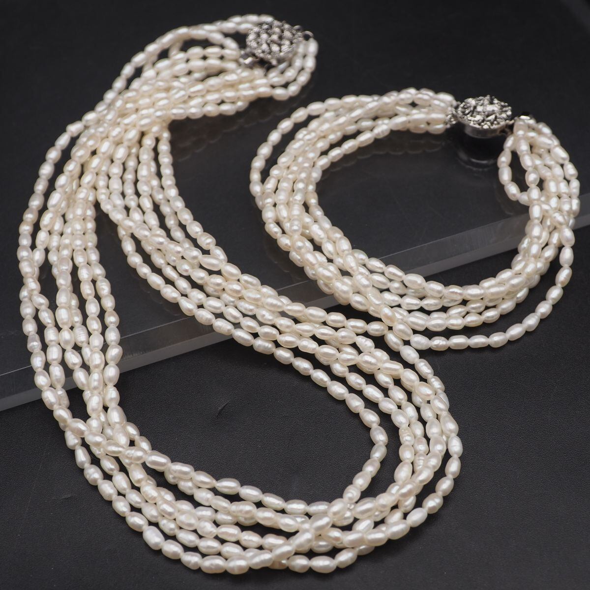 C093 淡水真珠 パール GSILVER刻印 ネックレス ブレスレット セット 6連 デザイン シルバー 6月誕生石