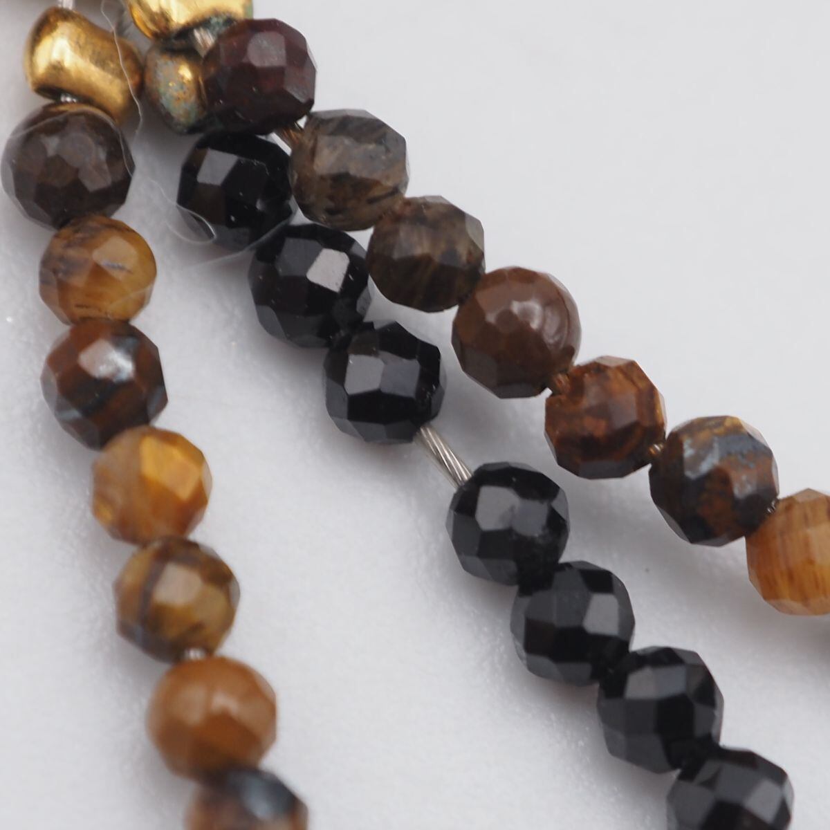 B824 タイガーアイ オニキス ネックレス 3連 ゴールド デザイン