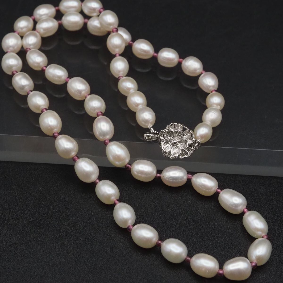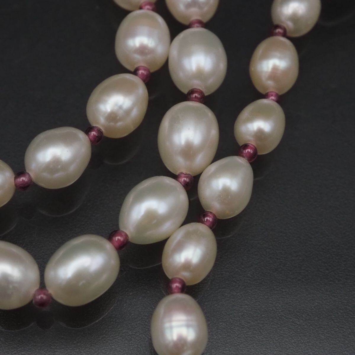 C630 淡水真珠 パール ガーネット SILVER刻印 ネックレス ブレスレット セット デザイン シルバー 1月 6月誕生石
