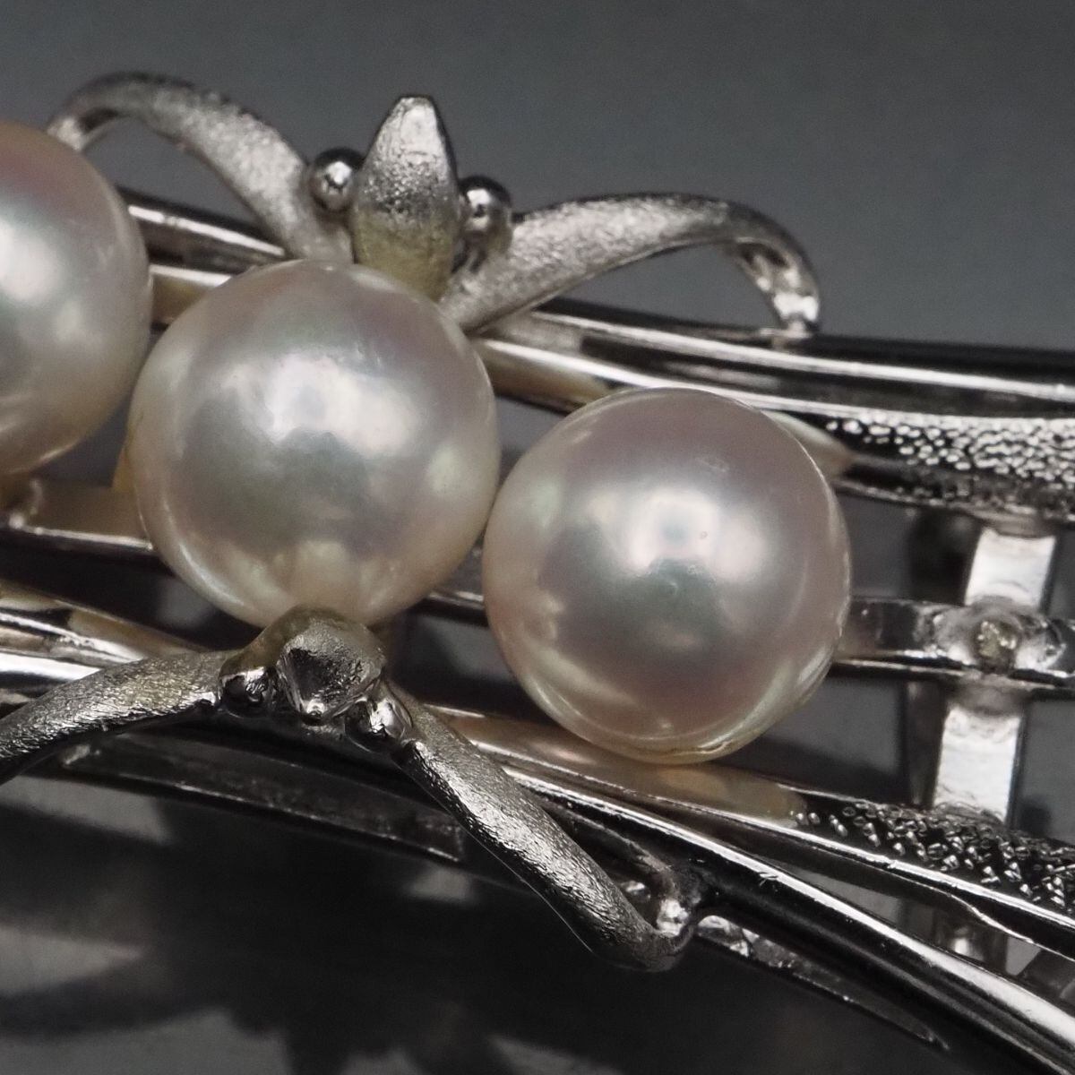 C881 本真珠 7.5mm3珠 パール 帯留め デザイン シルバー 和装小物 6月誕生石