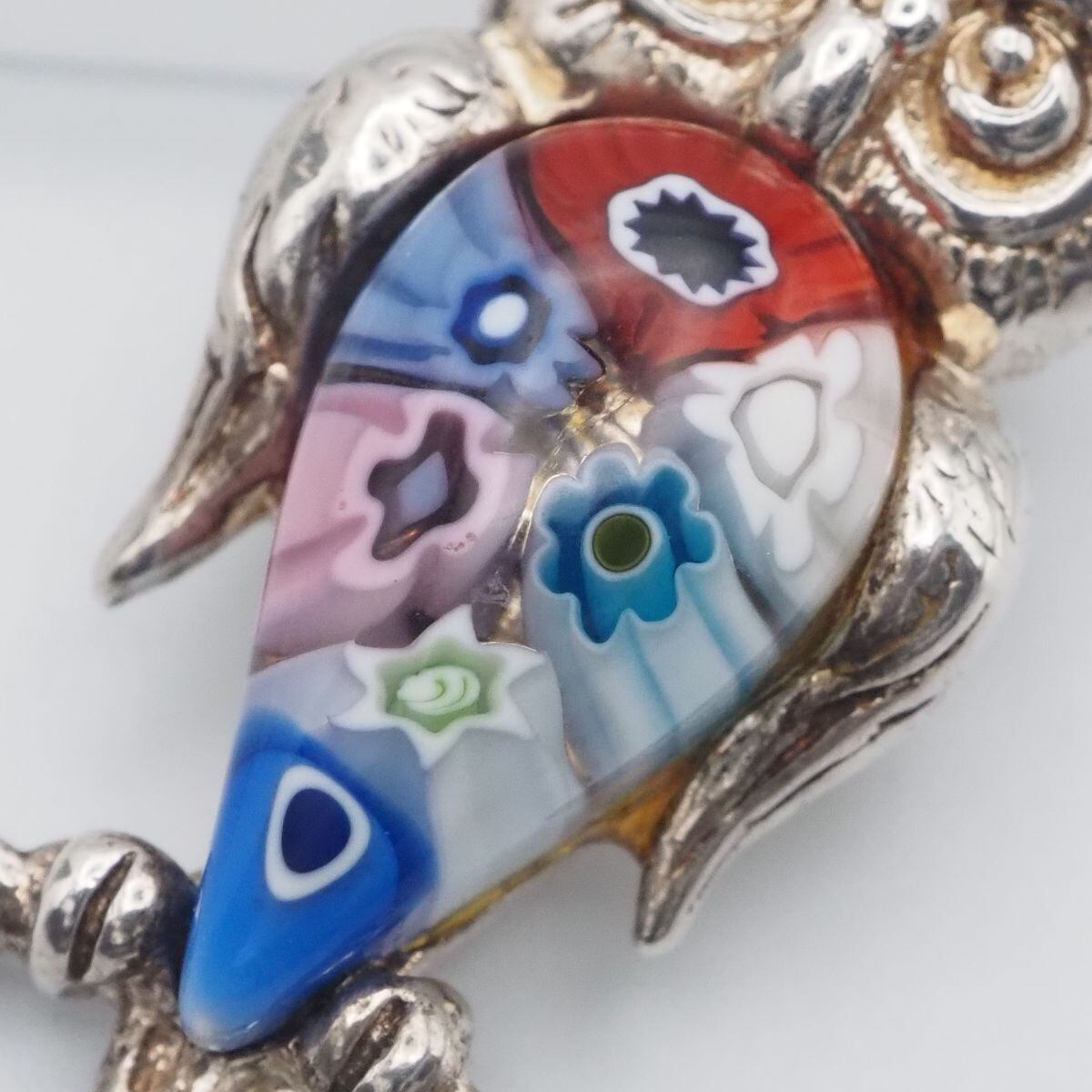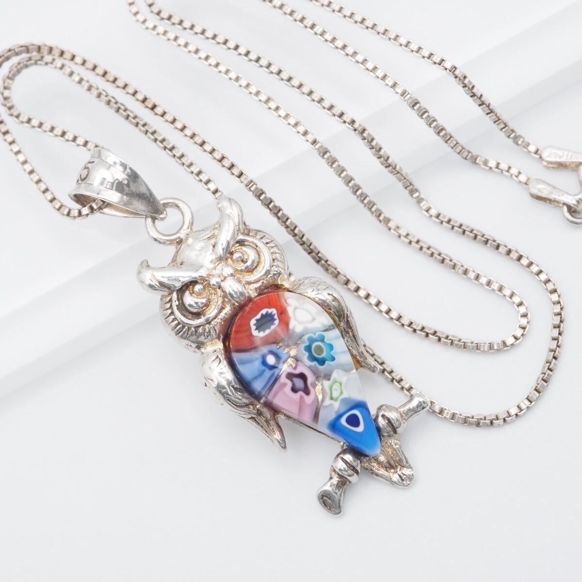 C757 MILLEFIORI ミルフィオリ ベネチアンガラス 925 ITALY刻印 ペンダント ネックレス 梟 フクロウ フラワー デザイン シルバー