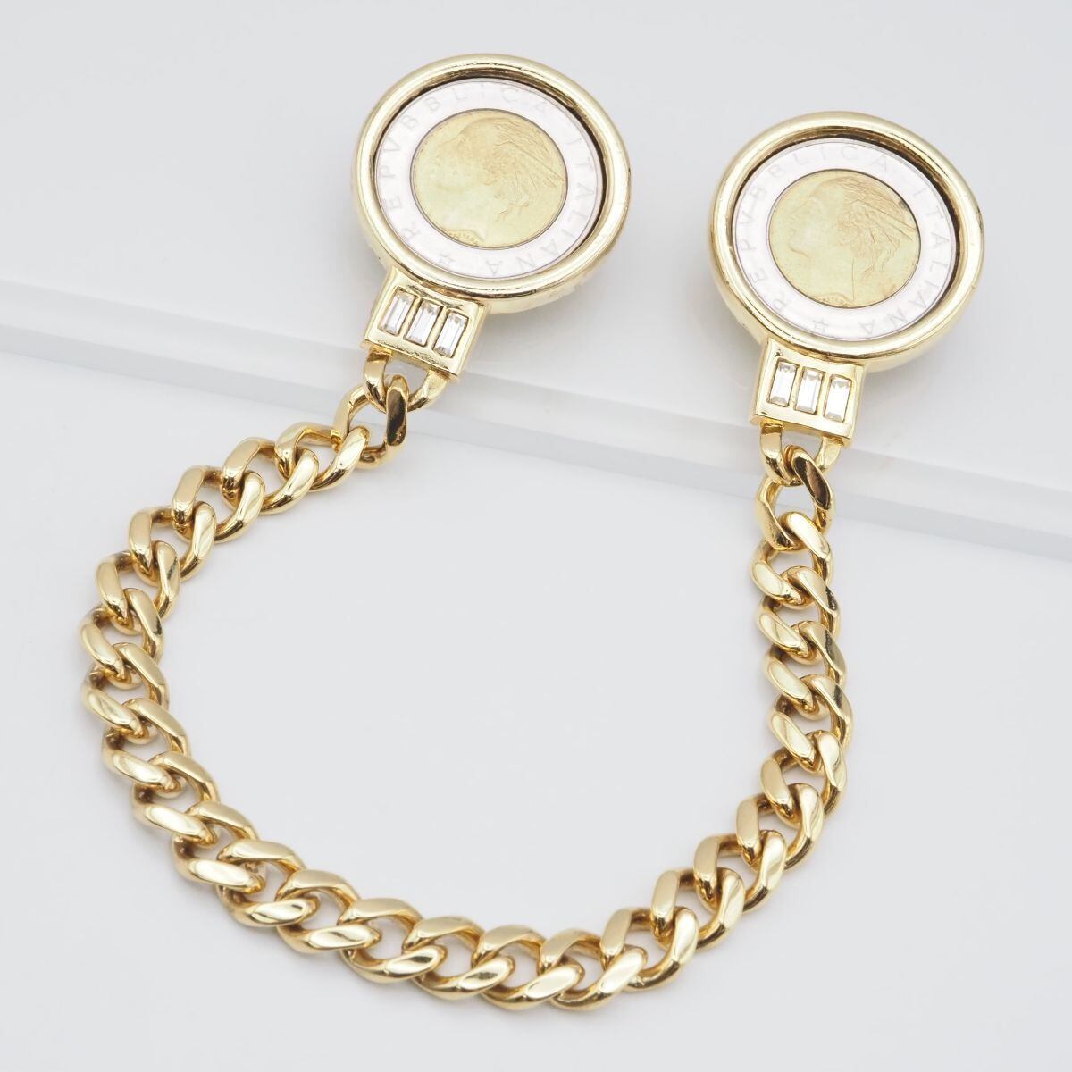 F087 ブローチ コイン ITALIANA REPVBBLICA イタリア共和国 喜平 キヘイチェーン ゴールド デザイン コスチュームジュエリー