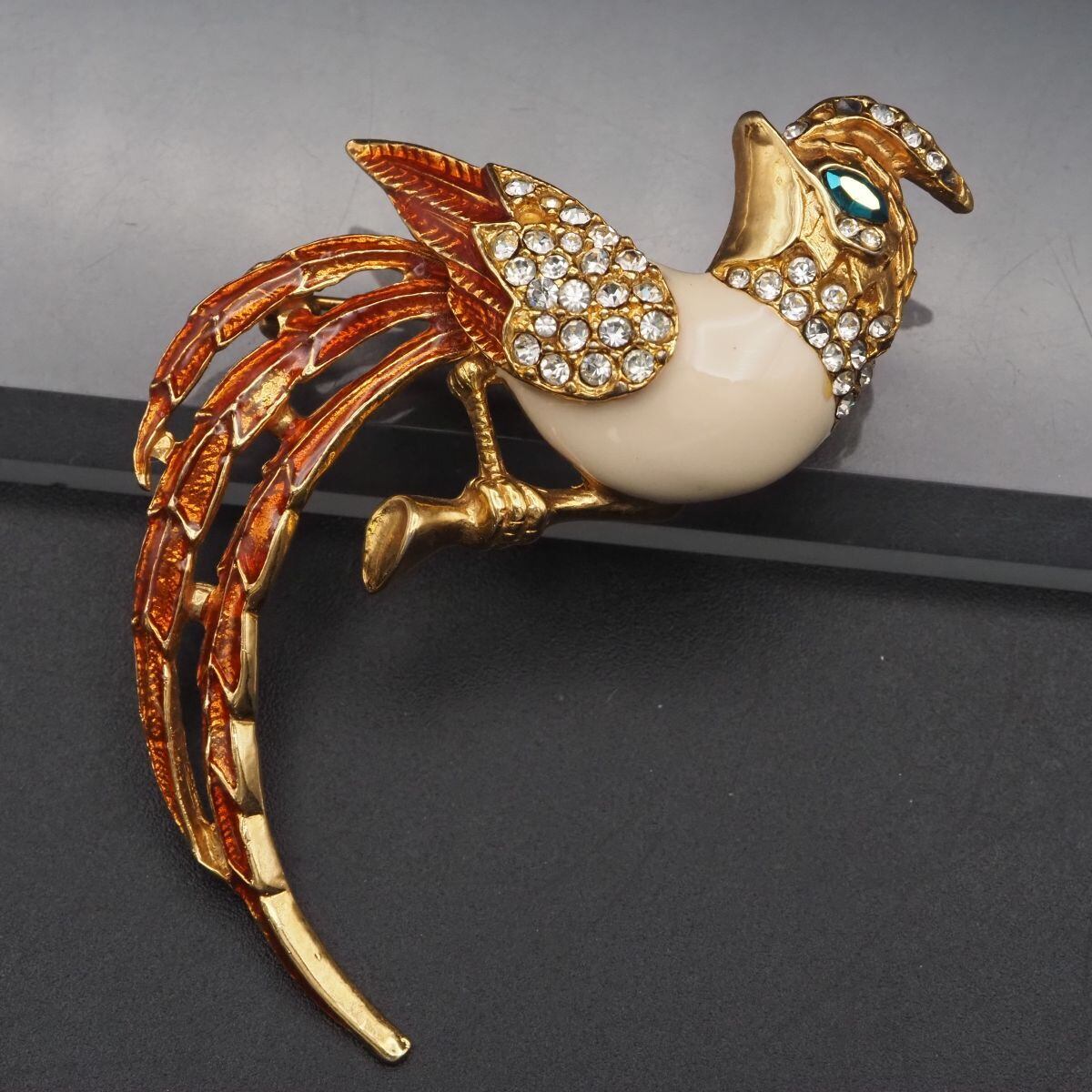 F324 ブローチ バード ブルーストーン風 ラインストーン ブラウンエナメル ゴールド デザイン コスチュームジュエリー