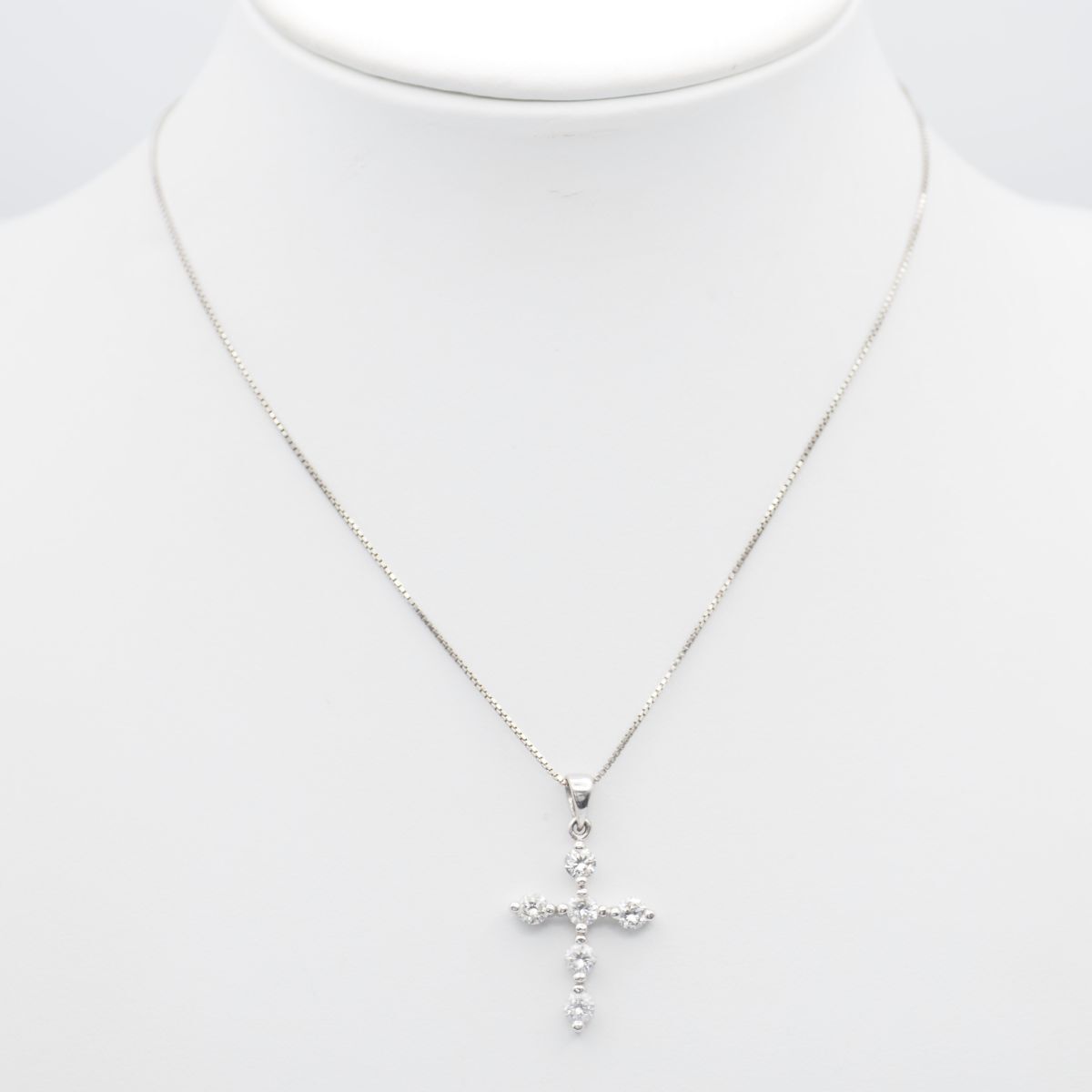 F523 ダイヤモンド風 925刻印 ペンダント ネックレス クロス デザイン シルバー