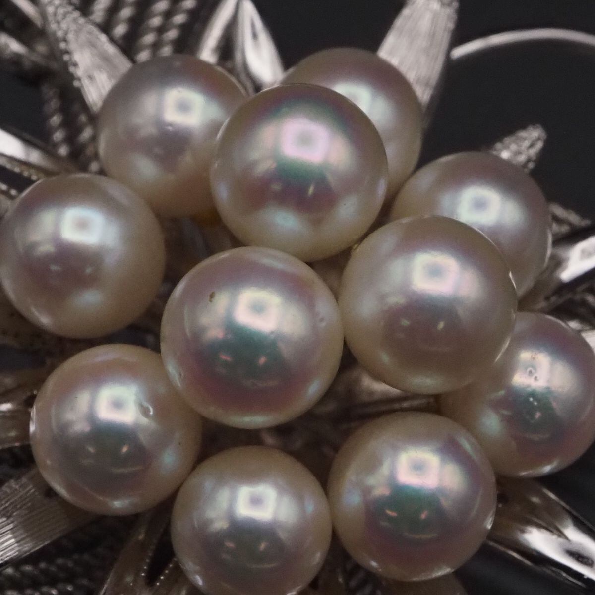 F625 本真珠 6.3-7mm11珠 パール STERLING刻印 ブローチ デザイン シルバー コサージュ 6月誕生石