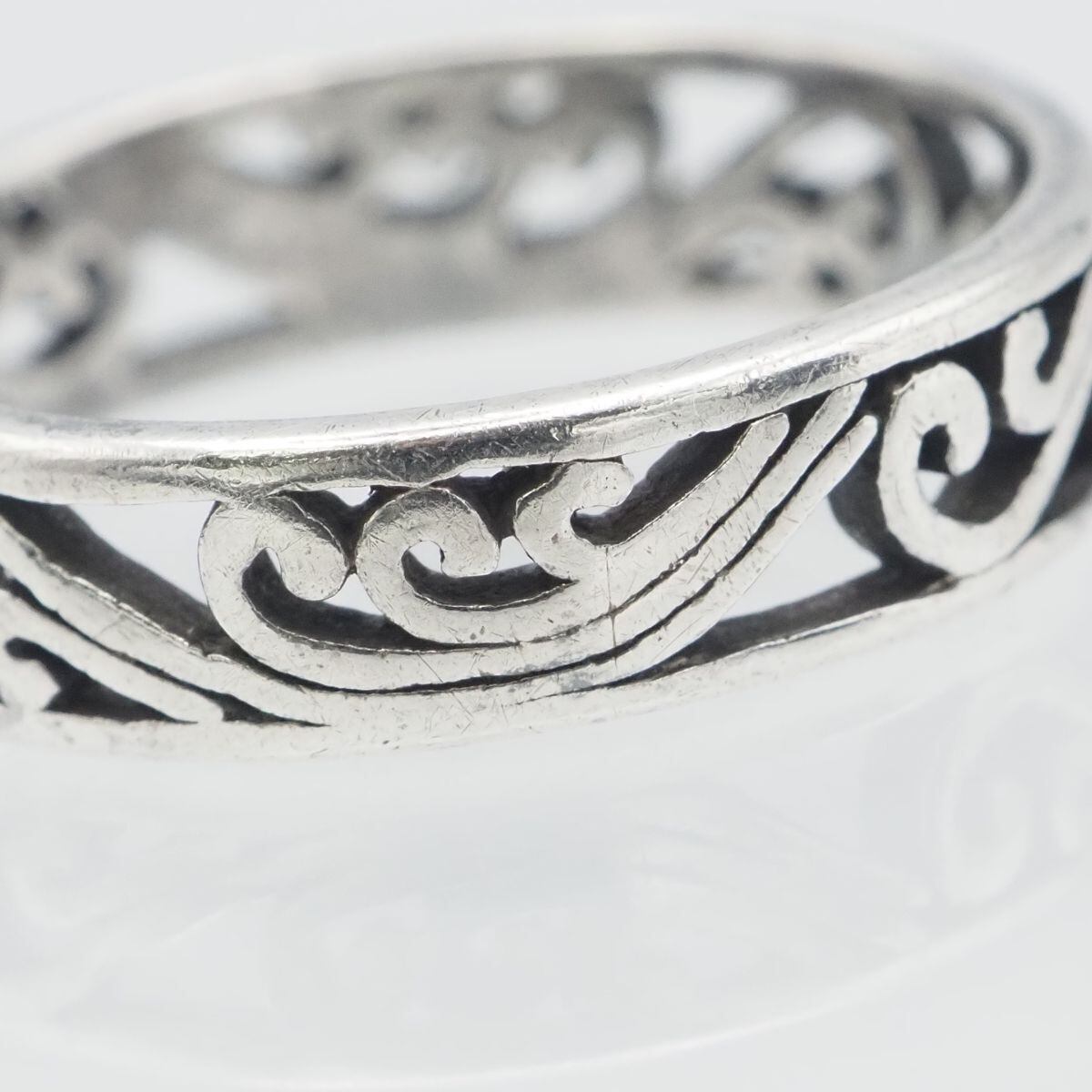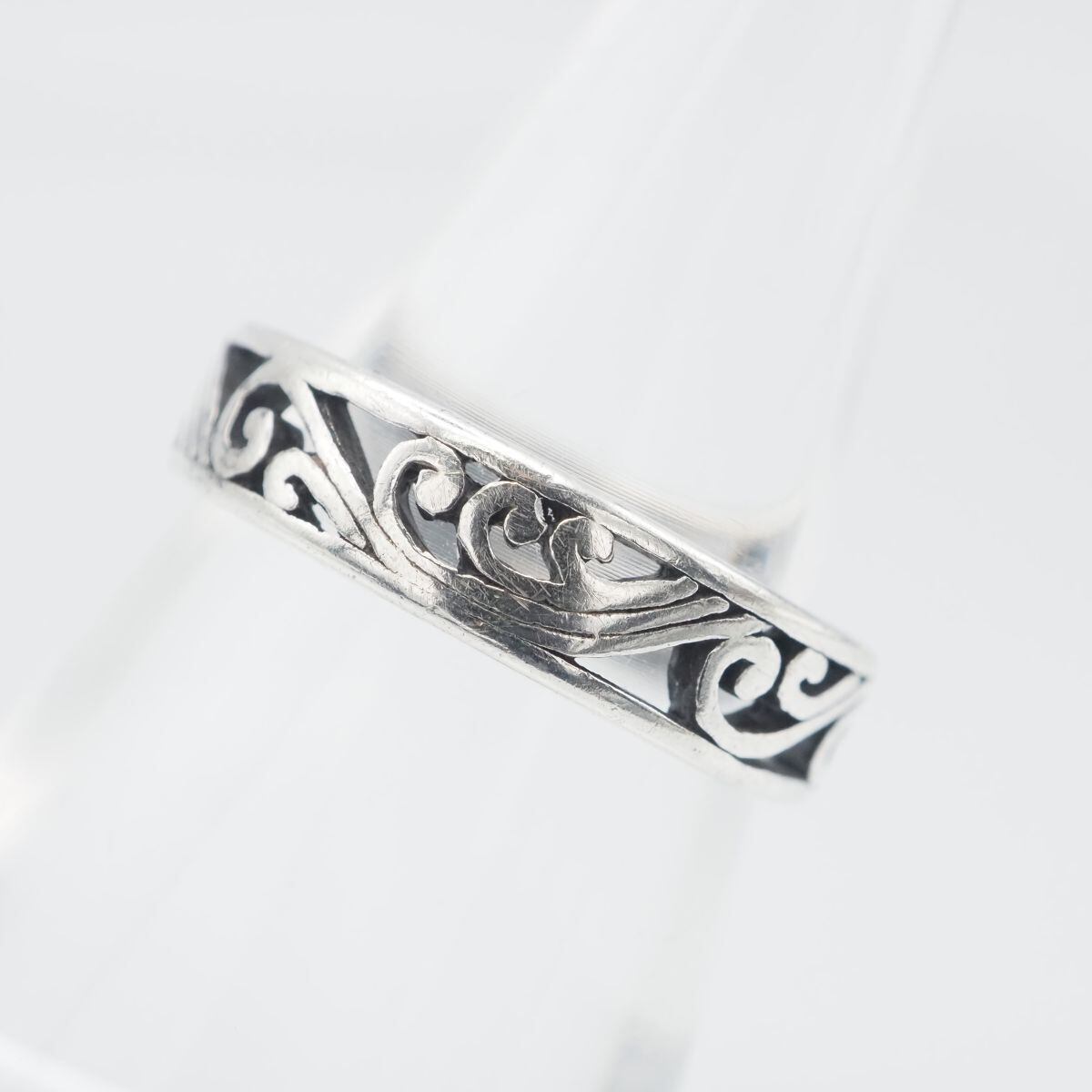 C285 ヴィンテージ 925刻印 リング 透かし彫り 波 デザイン シルバー 指輪 12号