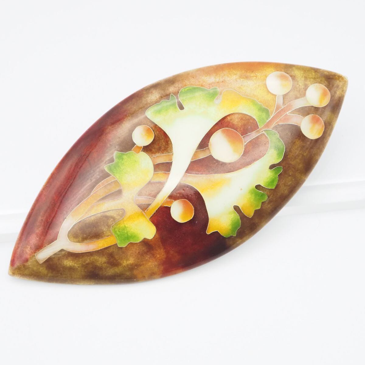 C442 七宝 ブローチ 大ぶり リーフ マルチカラー デザイン ヴィンテージ
