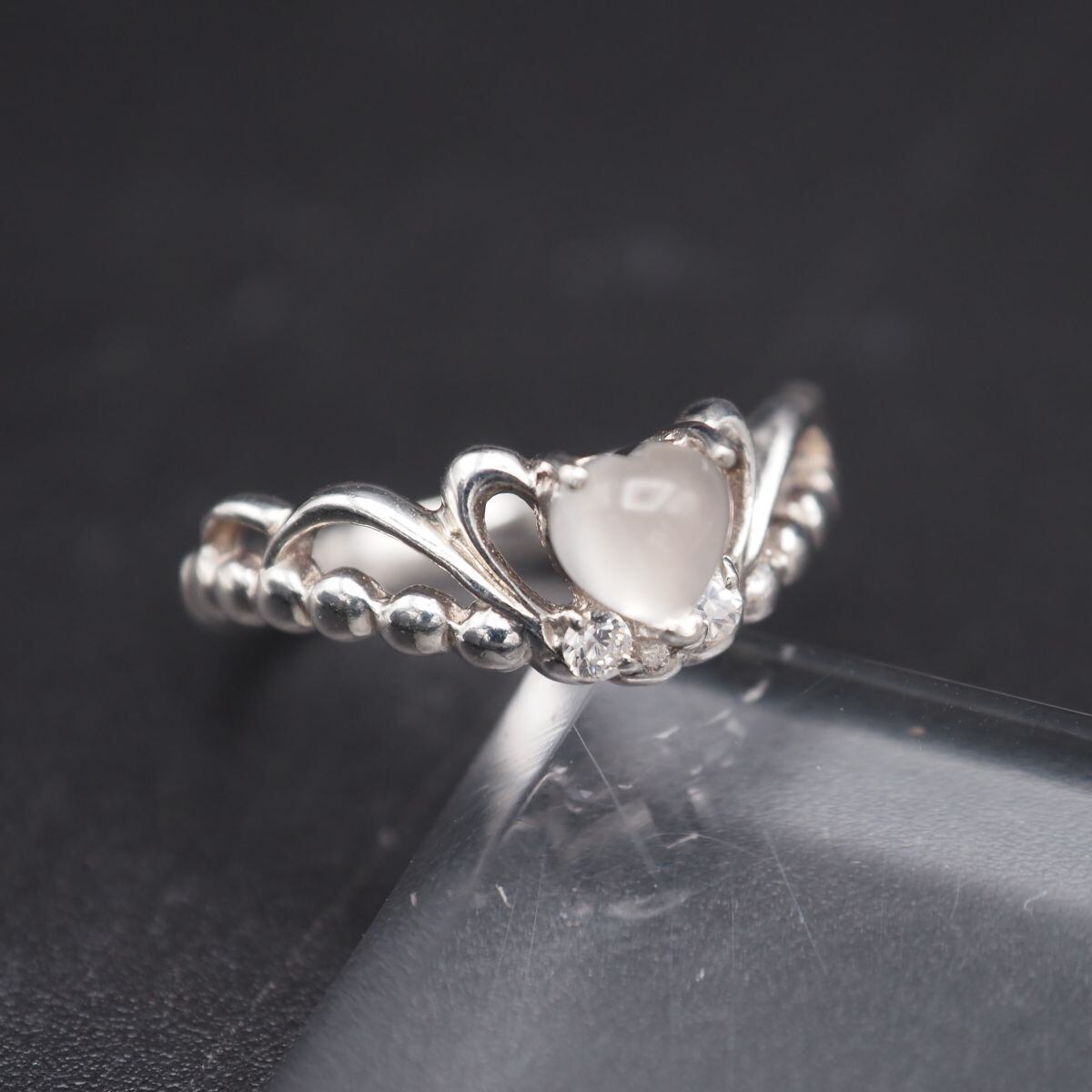 C228 キャッツアイストーン ダイヤモンド風 SILVER刻印 リング ハート デザイン シルバー 指輪 2月誕生石 15号