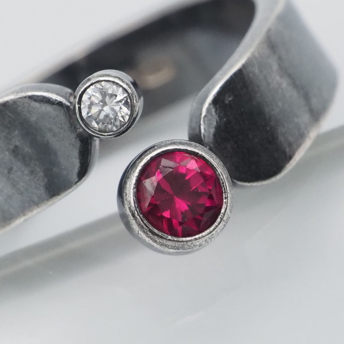 C253 ルビー? ピンクスピネル? ダイヤモンド風 HB 925刻印 リング デザイン シルバー 指輪 9~10号