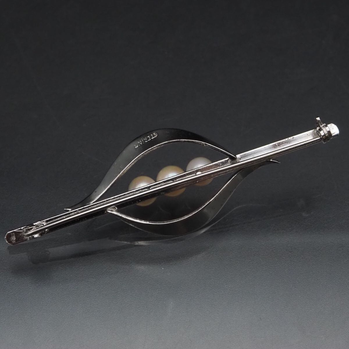 C716 本真珠 5.7-6.1mm3珠 パール STERLING刻印 ブローチ デザイン シルバー コサージュ 6月誕生石