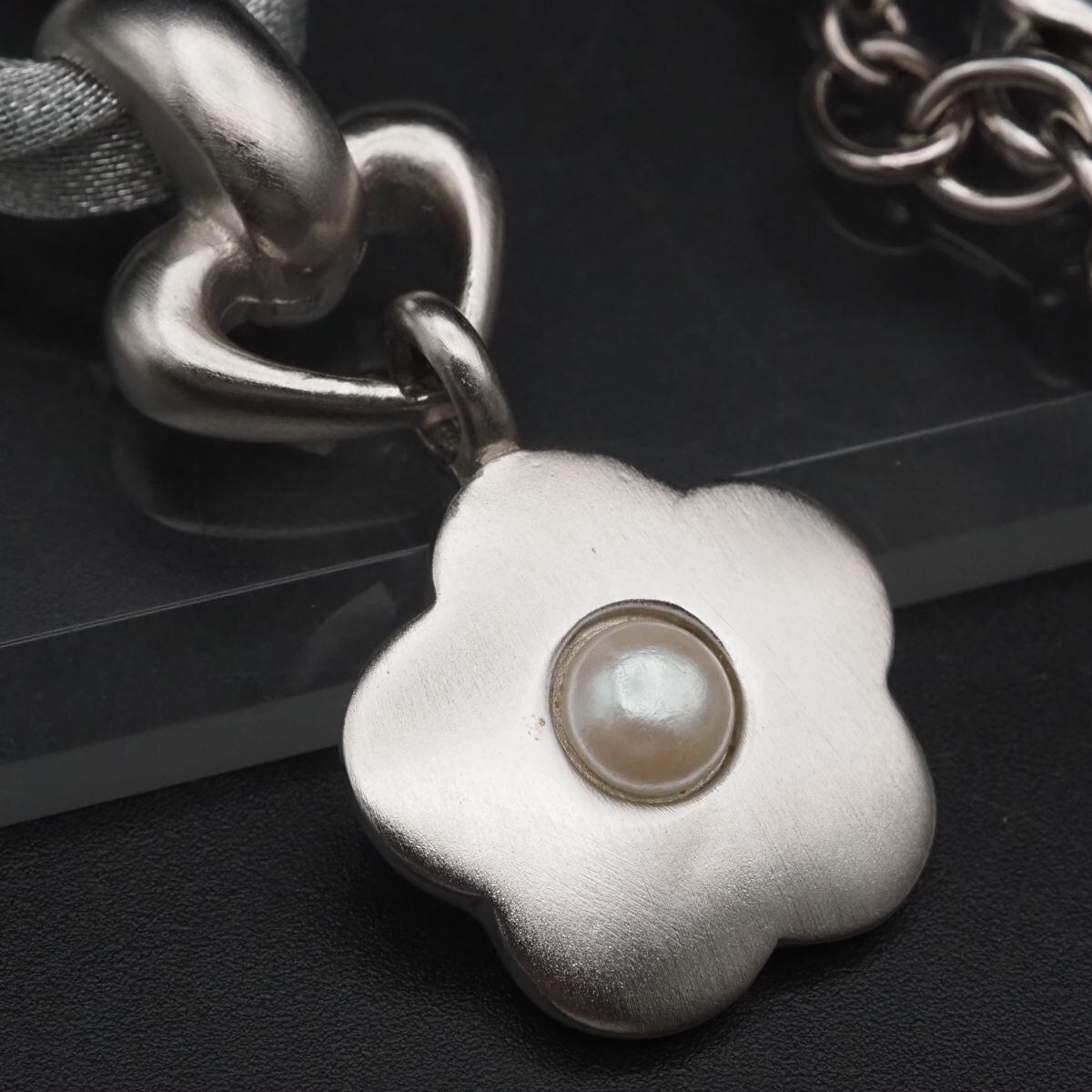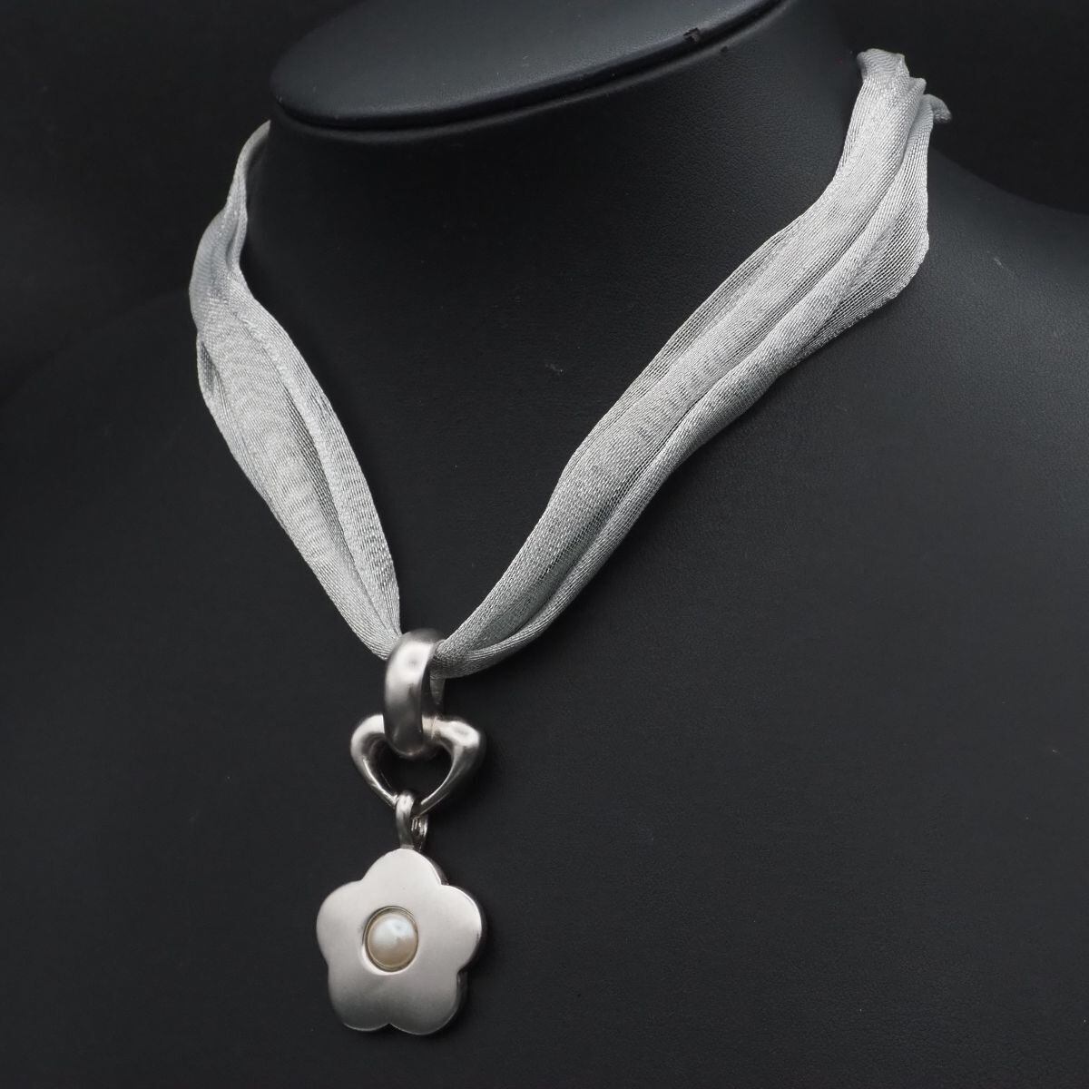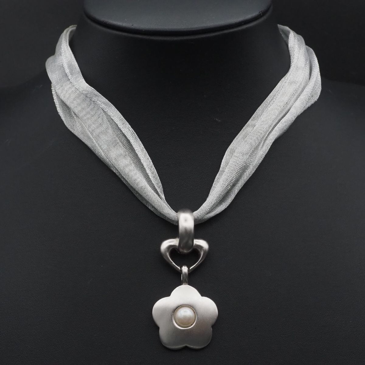 C704 ジバンシイ GIVENCHY ネックレス フェイクパール フラワー 紐 デザイン シルバー