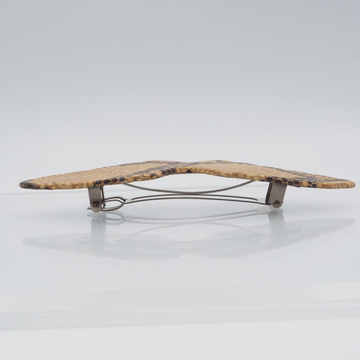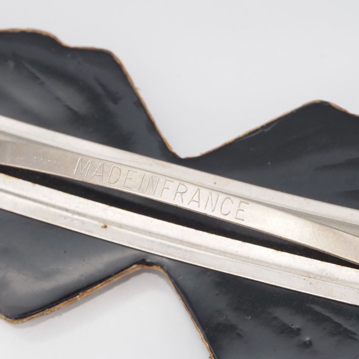 C786 ヴィンテージ MADE IN FRANCE刻印 ヘアピン クリップ 蛇 ヘビ スネーク パイソン柄 デザイン シルバー バレッタ 髪飾り フランス製