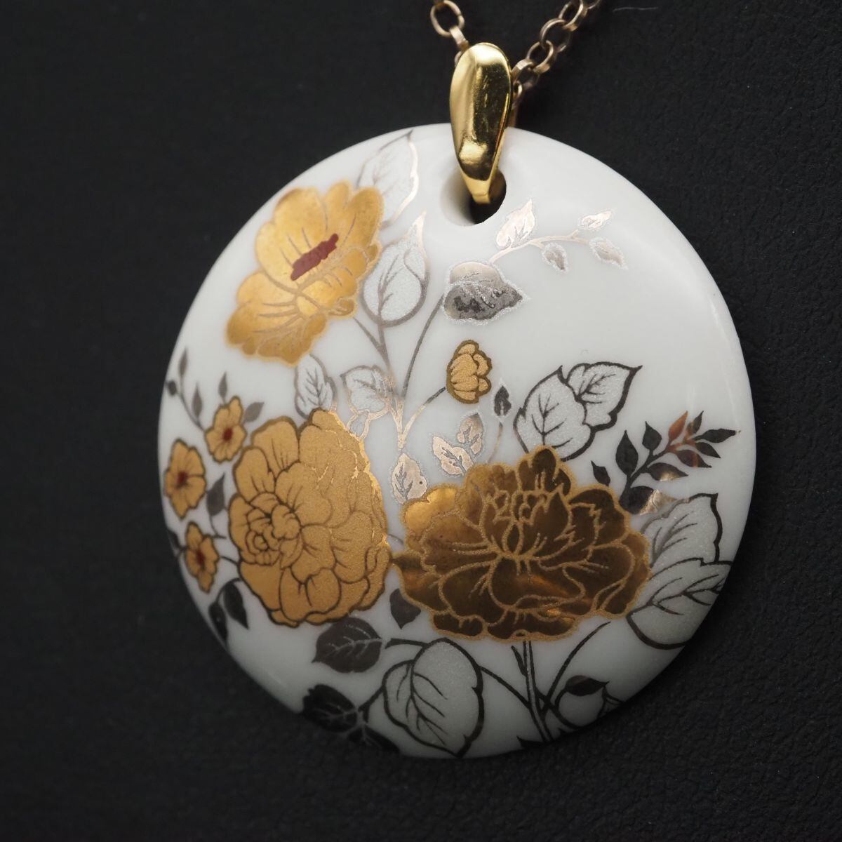 F179 ブルーノメルシエ BRUNO MERCIER PARIS ペンダント トップ 陶器 フラワー ゴールド デザイン シルバー チャーム ヘッド