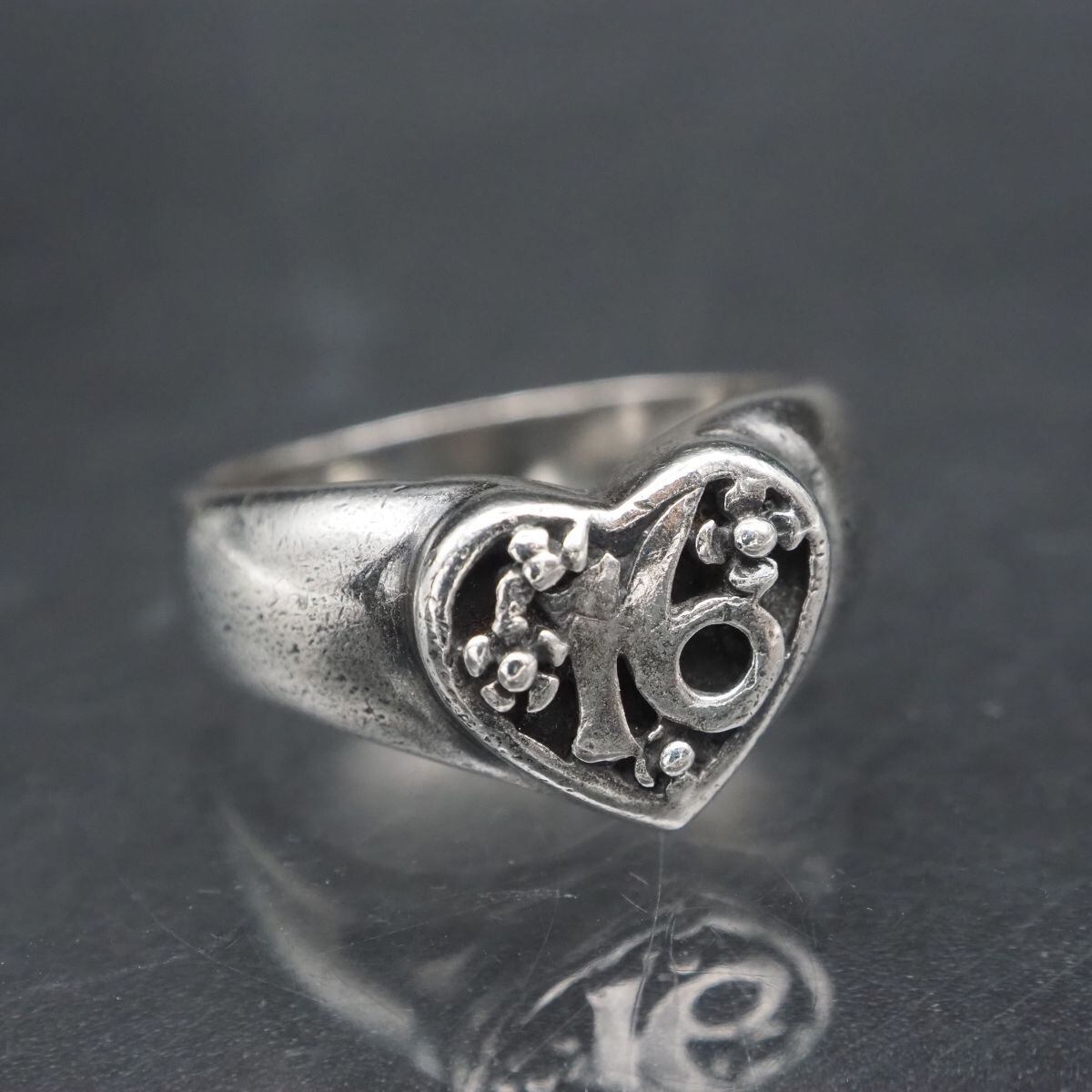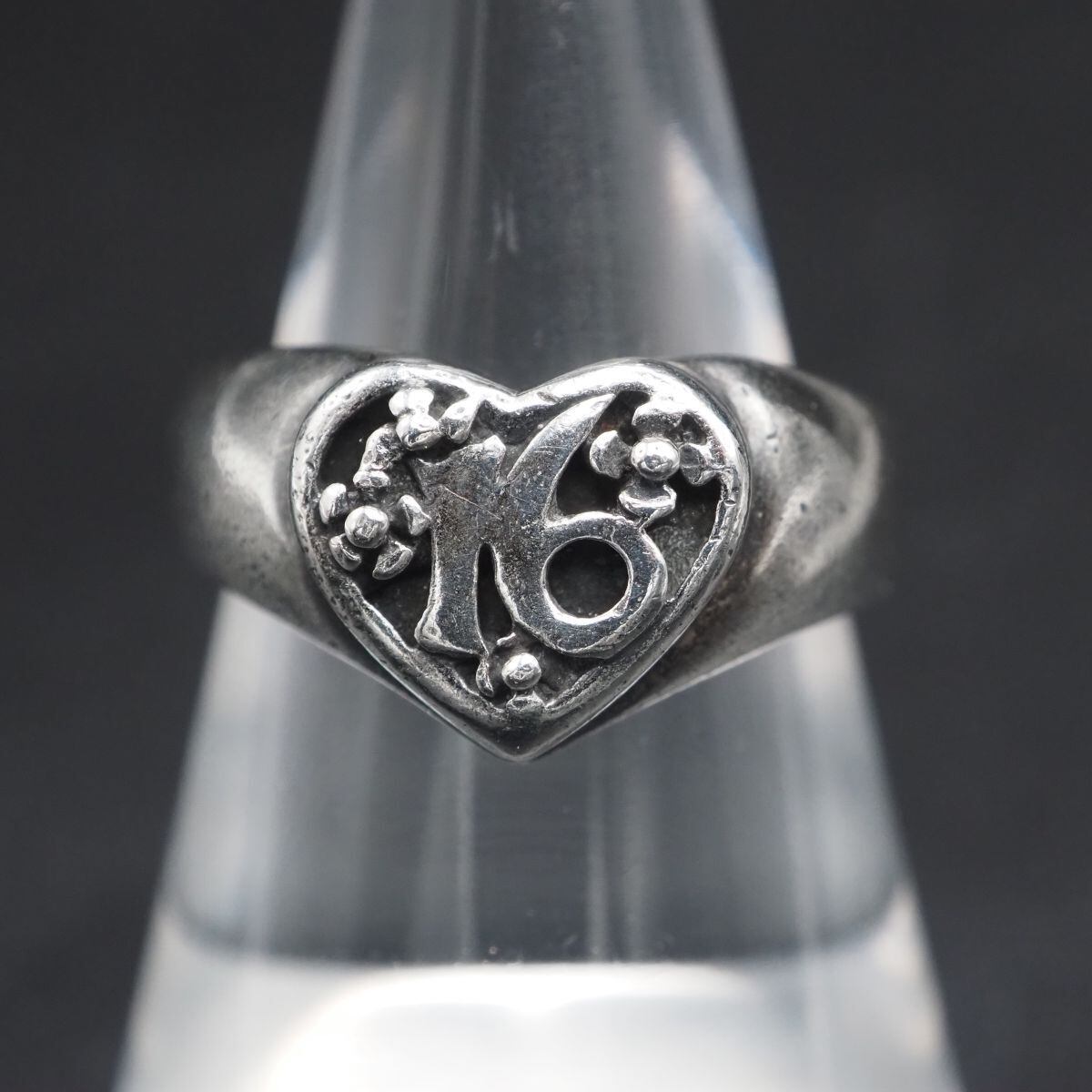 F143 ヴィンテージ 925刻印 リング ハート ナンバー 16 デザイン シルバー 指輪 13号