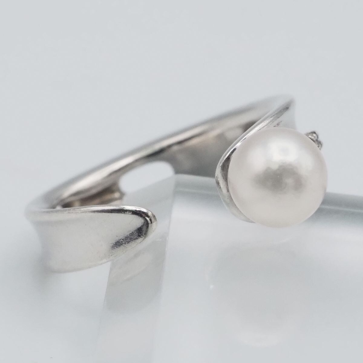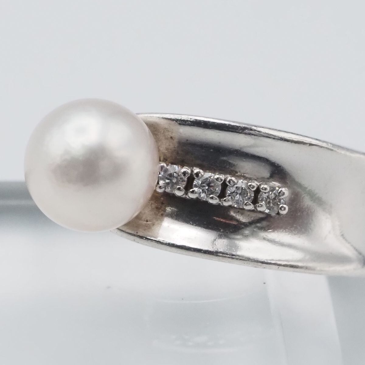 F264 本真珠 6.1mm珠 パール SILVER刻印 リング ダイヤモンド風 デザイン シルバー 指輪 6月誕生石 8号