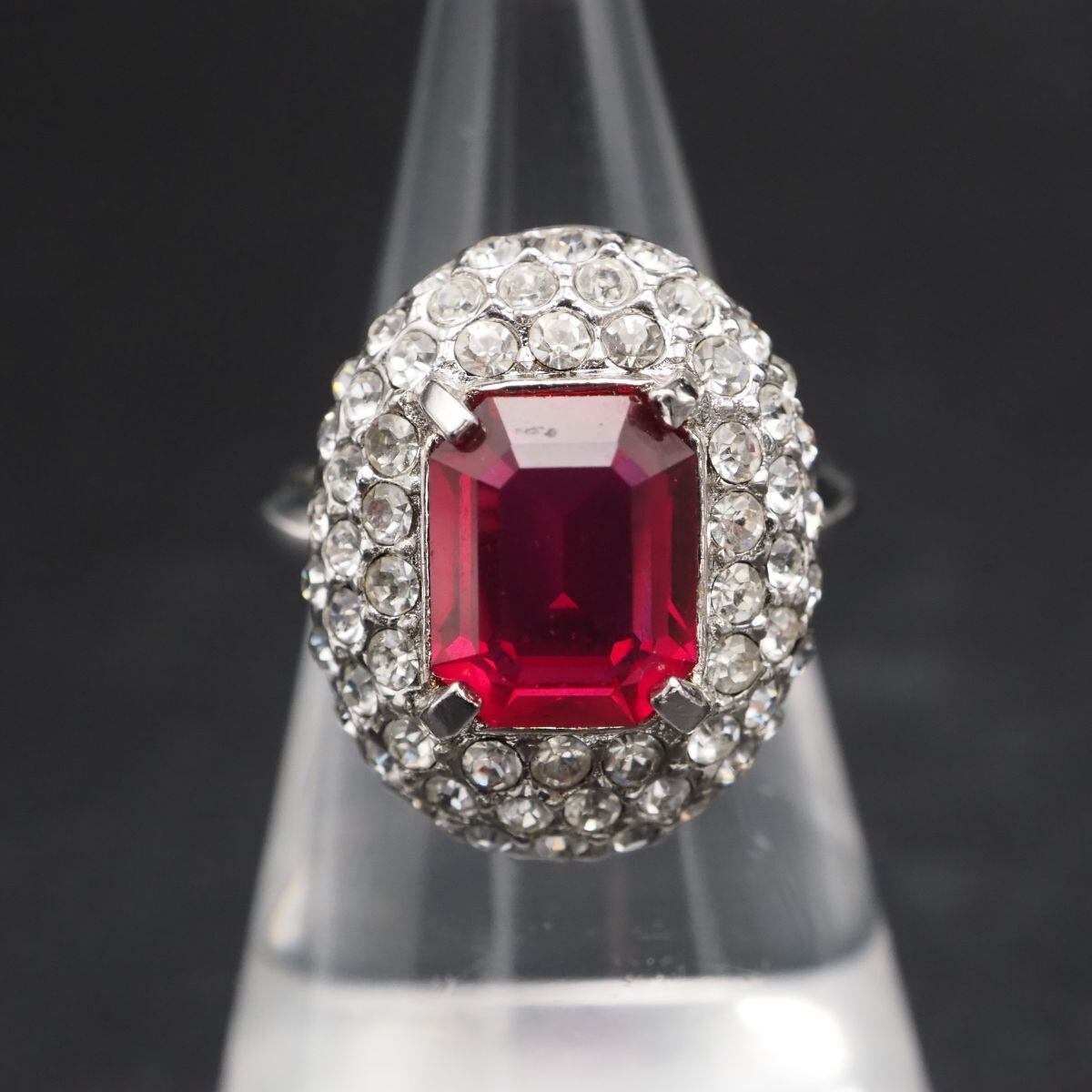 F416 Attwood and Sawyer アトウッド&ソーヤー リング ルビー風 ラインストーン パヴェ デザイン シルバー 指輪 9号