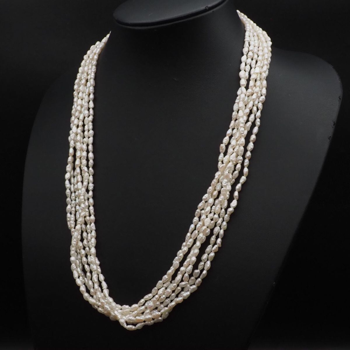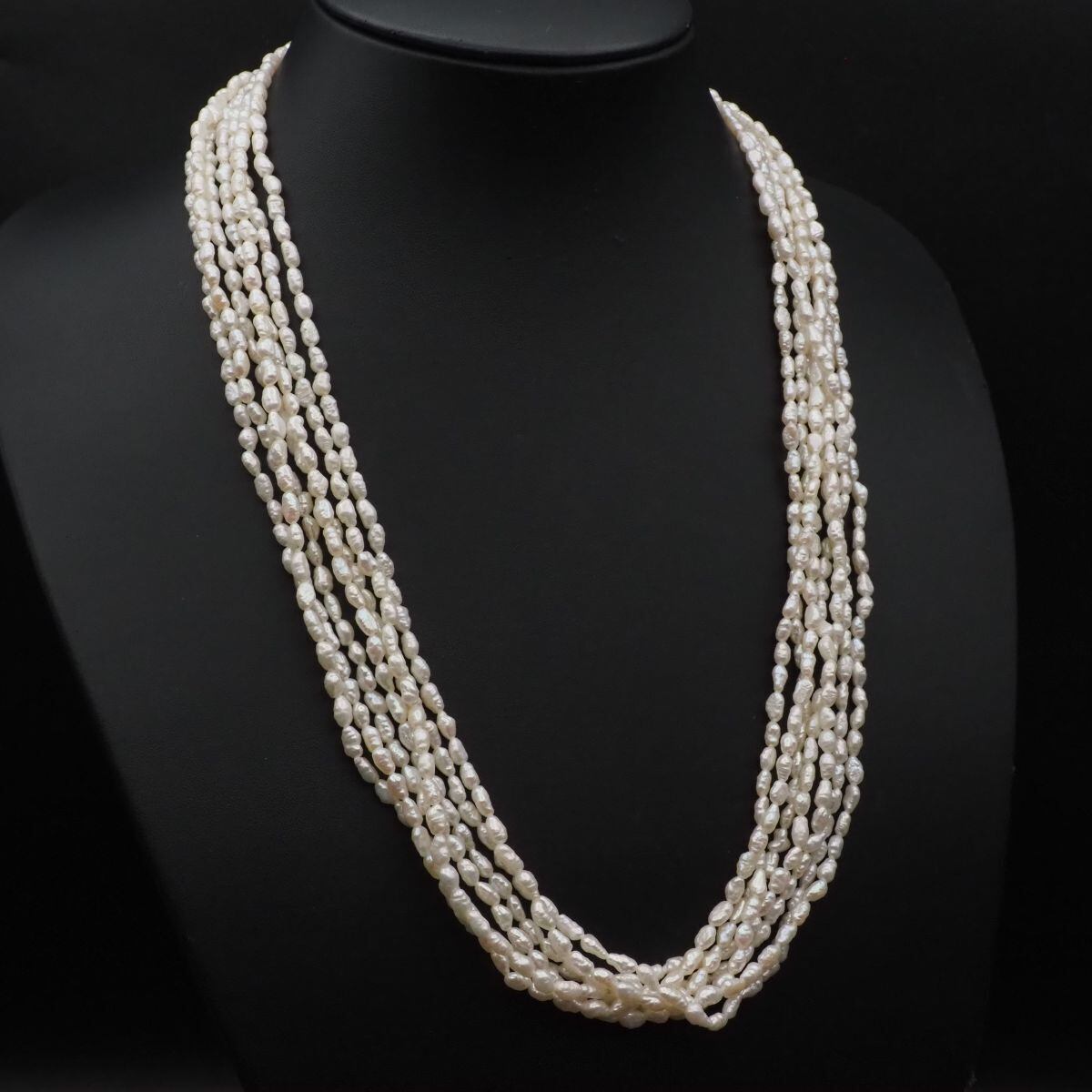 F769 淡水真珠 パール ネックレス 7連 デザイン シルバー 6月誕生石