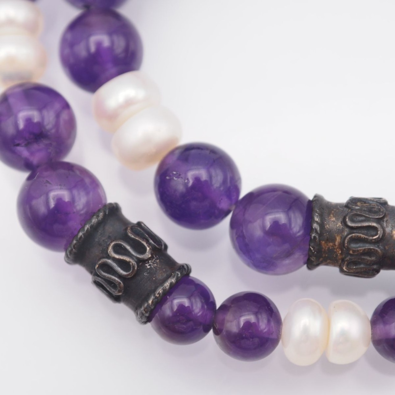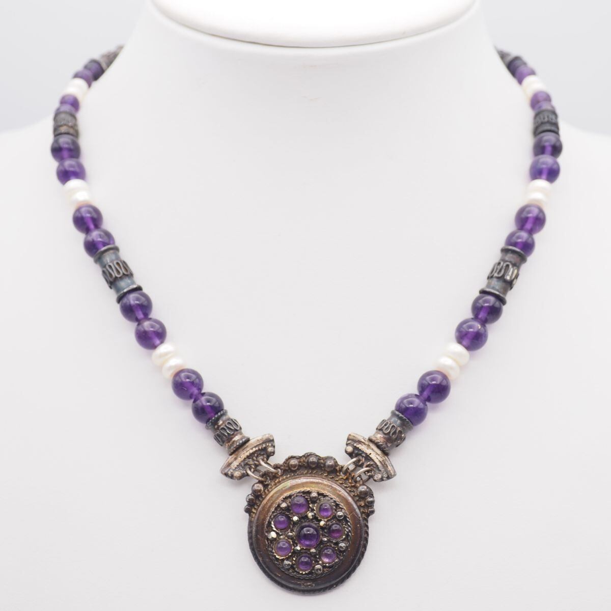 F838 アメジスト 淡水真珠 パール 925刻印 ネックレス デザイン シルバー ヴィンテージ 2月 6月誕生石
