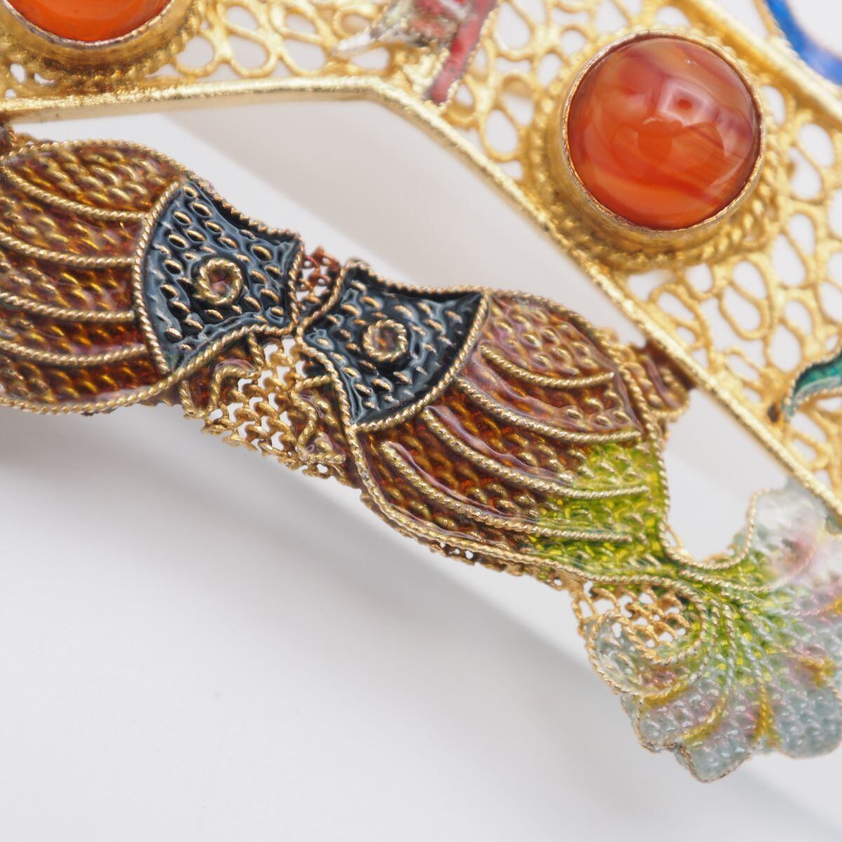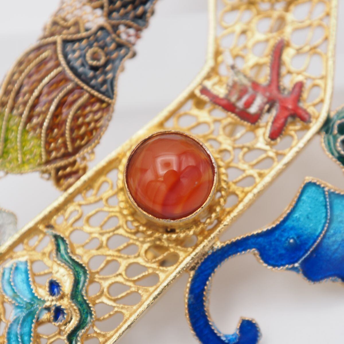 F661 レッドアゲート 赤瑪瑙 メノウ 七宝 S925刻印 ブローチ 魚 フィッシュ ゴールド デザイン シルバー ヴィンテージ