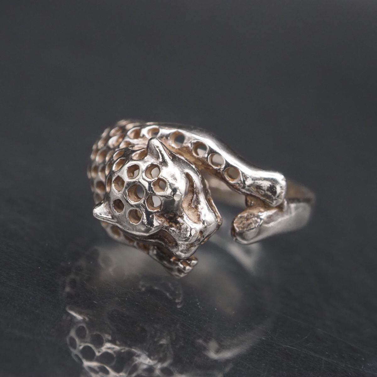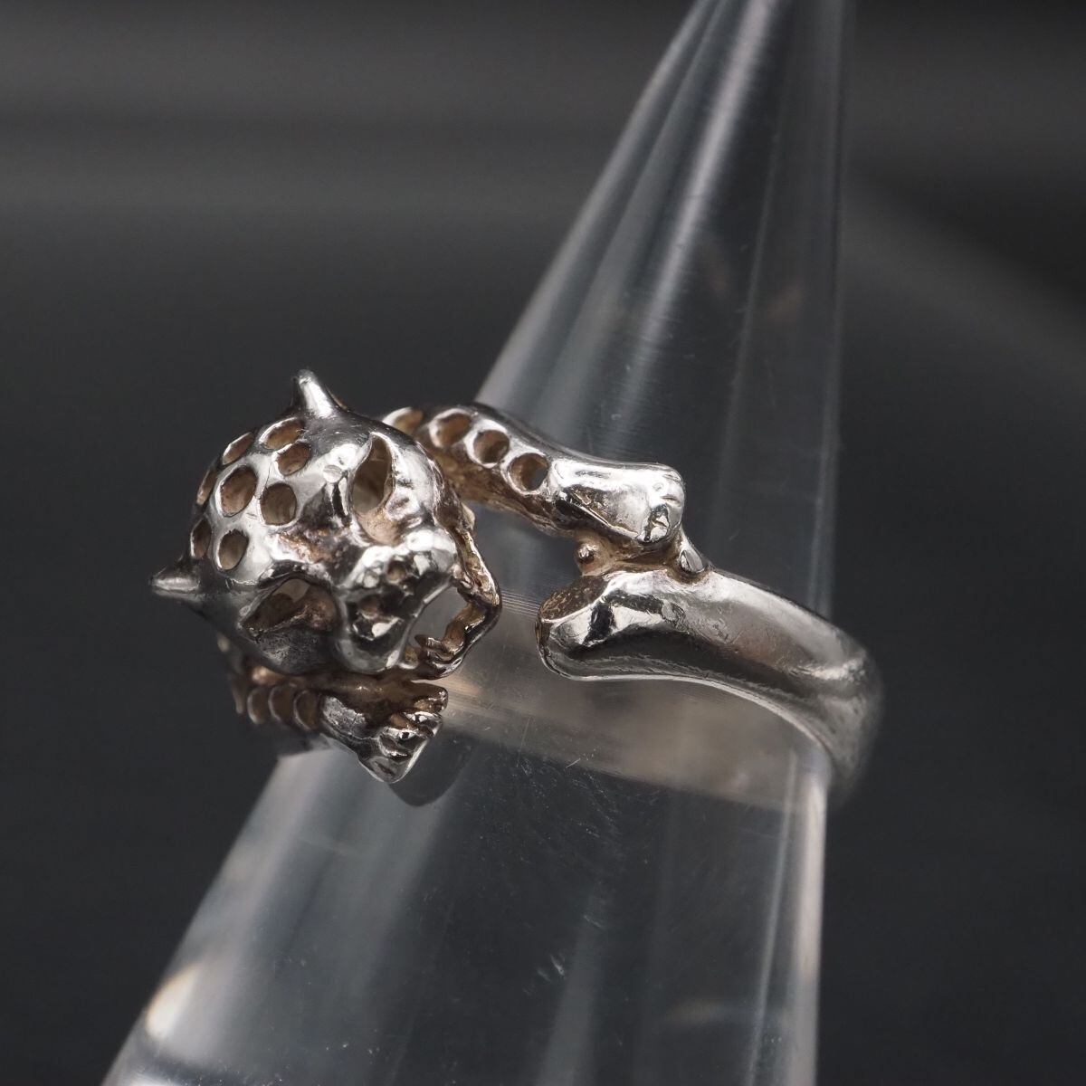 F766 ヴィンテージ 925 MEX刻印 リング ヒョウ 豹 ジャガー デザイン シルバー 指輪 13号