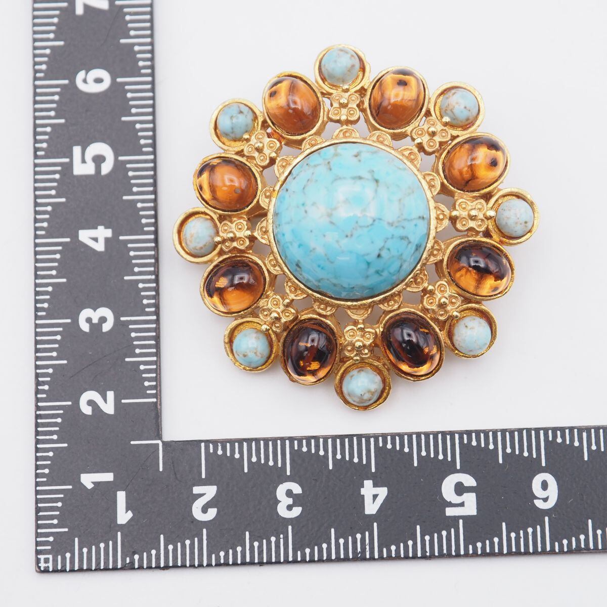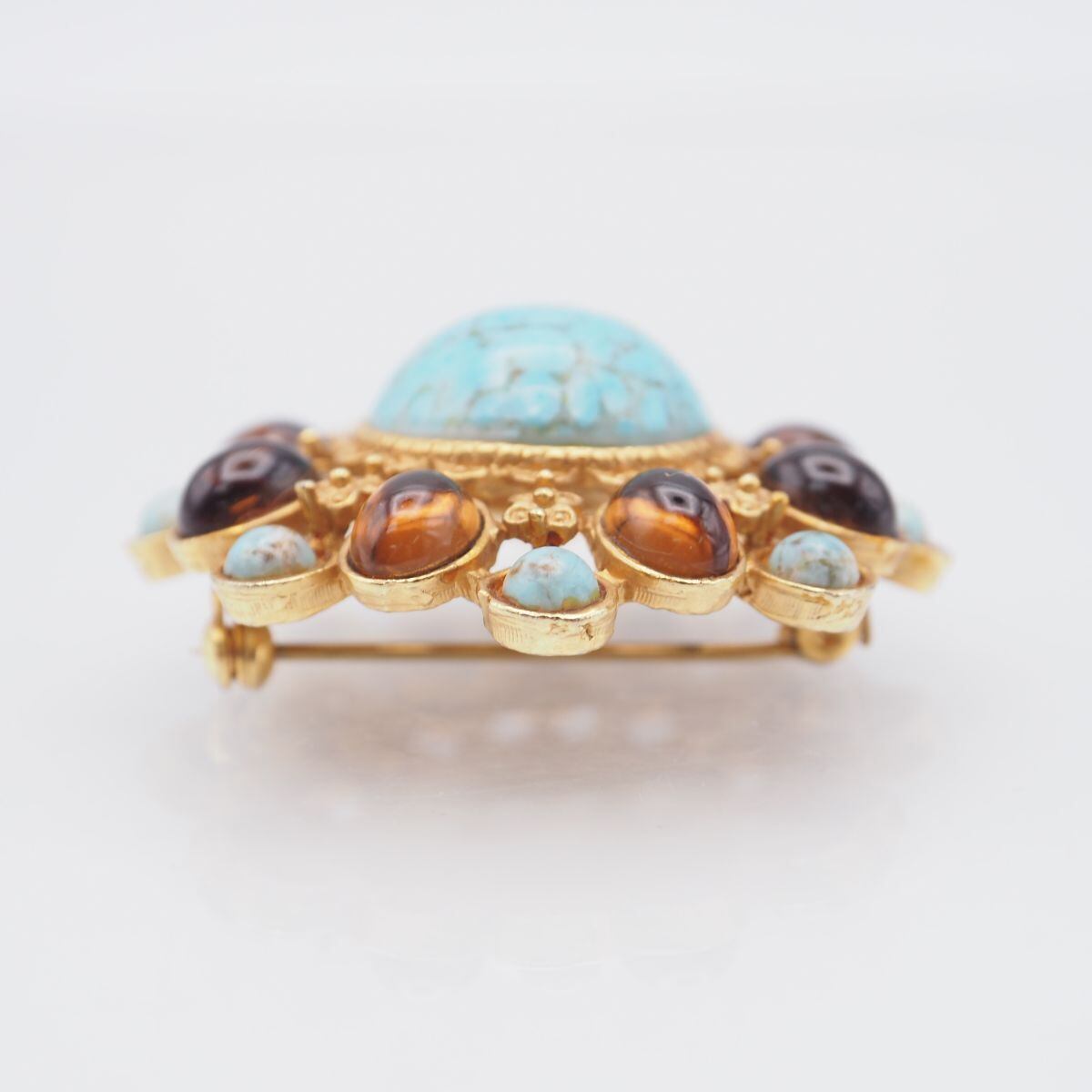 G183 ブローチ ブルーガラス カラーストーン風 ゴールド デザイン コスチュームジュエリー