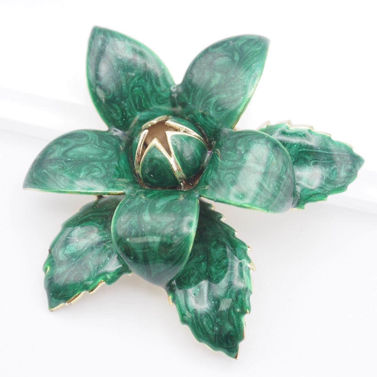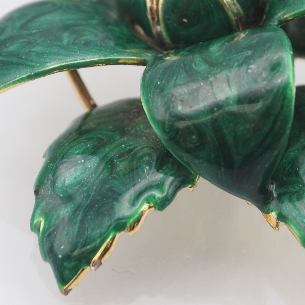 G164 ブローチ フラワー マーブル グリーンエナメル ゴールド デザイン コスチュームジュエリー