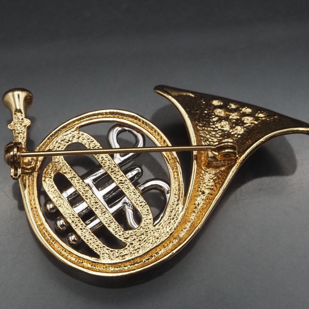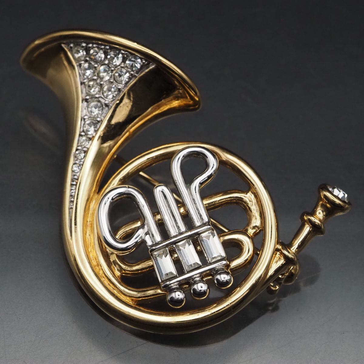 G174 ブローチ ホルン 管楽器 ラインストーン ゴールド シルバー デザイン コスチュームジュエリー