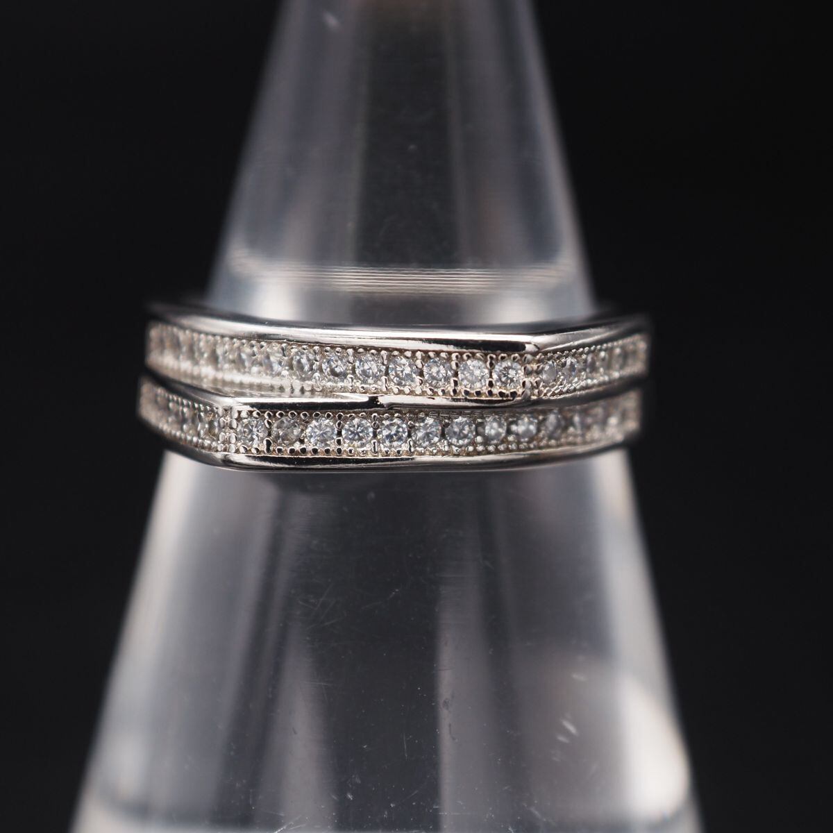 B512 ダイヤモンド風 S925刻印 リング ラインストーン デザイン シルバー 指輪 9号