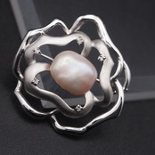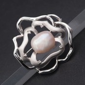 B661 バロックパール 真珠 ダイヤモンド 0.05ct SILVER刻印 ブローチ デザイン シルバー コサージュ 4月 6月誕生石