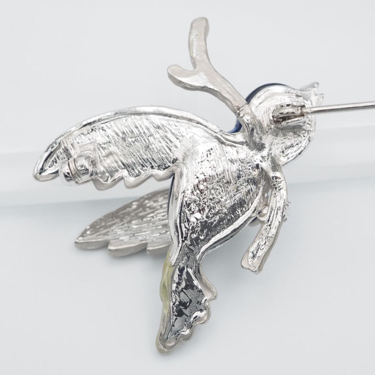 C149 ブローチ バード ラインストーン ブルー デザイン シルバー コスチュームジュエリー