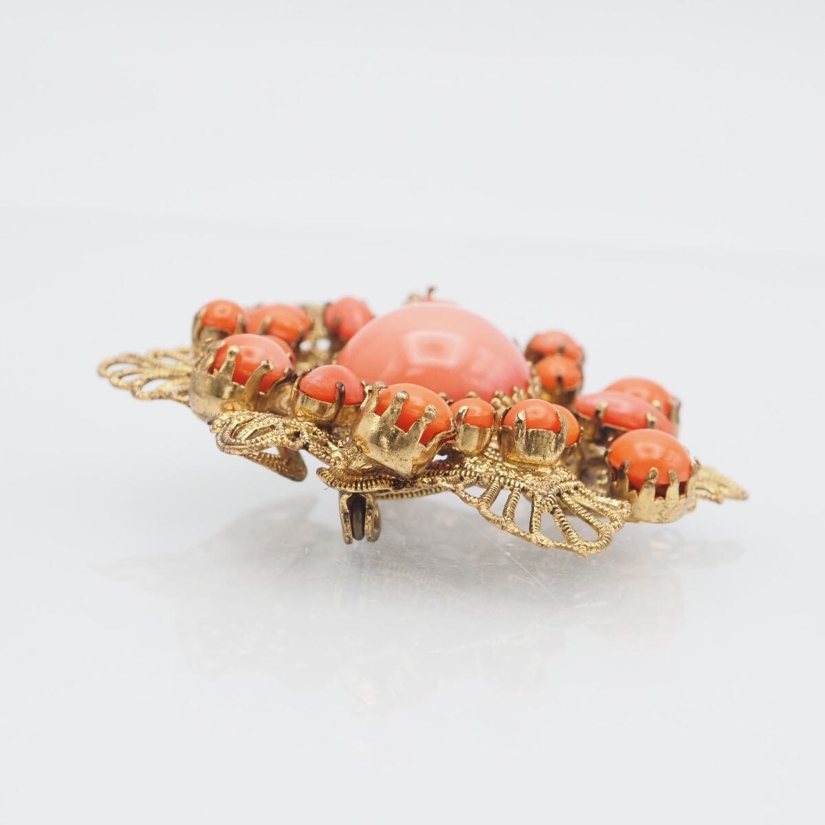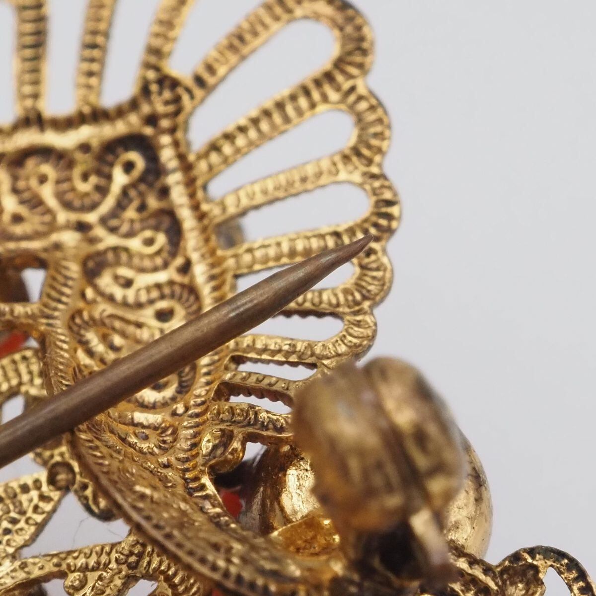 C393 AUSTRIA刻印 ブローチ フラワー カラーストーン風 透かし彫り ゴールド デザイン