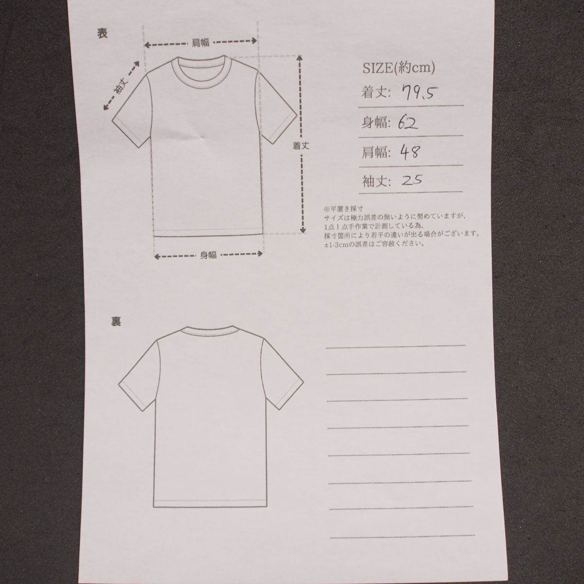 ※平置き採寸。多少の誤差はご容赦ください。