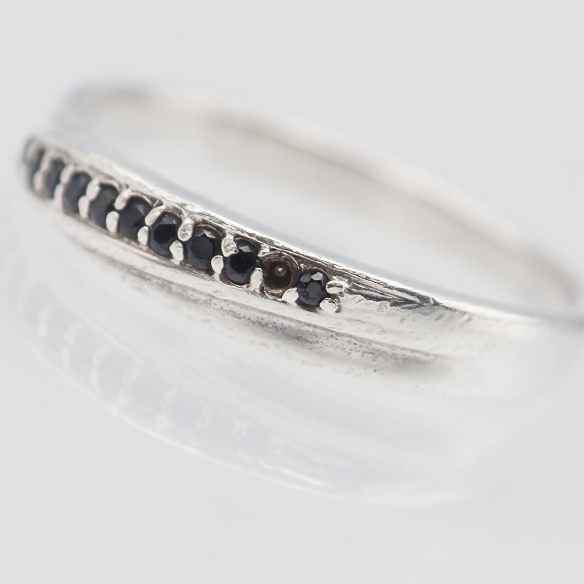 C736 オニキス 925刻印 リング ラインストーン デザイン シルバー 指輪 15号