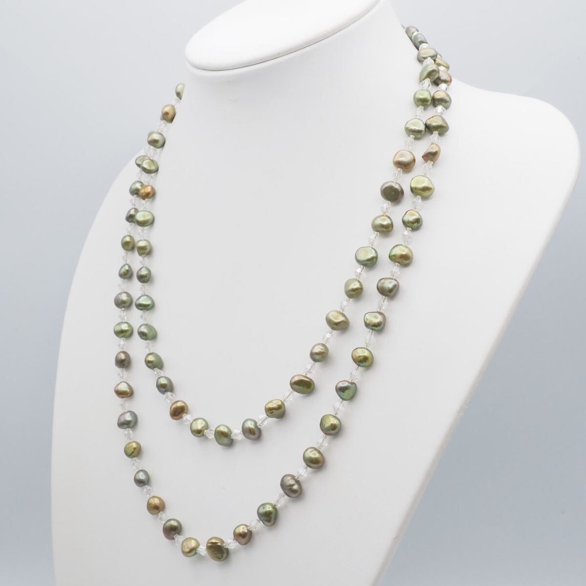 C748 淡水真珠 パール ネックレス 2連 グリーン系カラー デザイン シルバー 6月誕生石