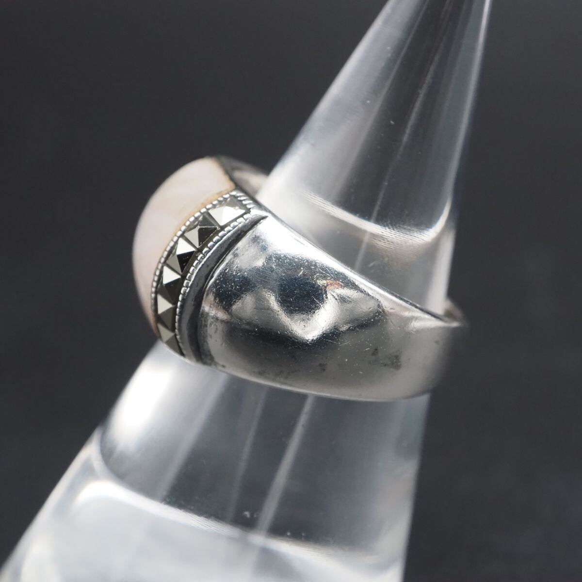 F188 imac イマック シェル 925刻印 リング マーカサイト マルカジット 裏細工 デザイン シルバー 指輪 13号