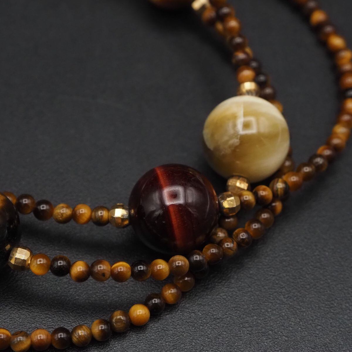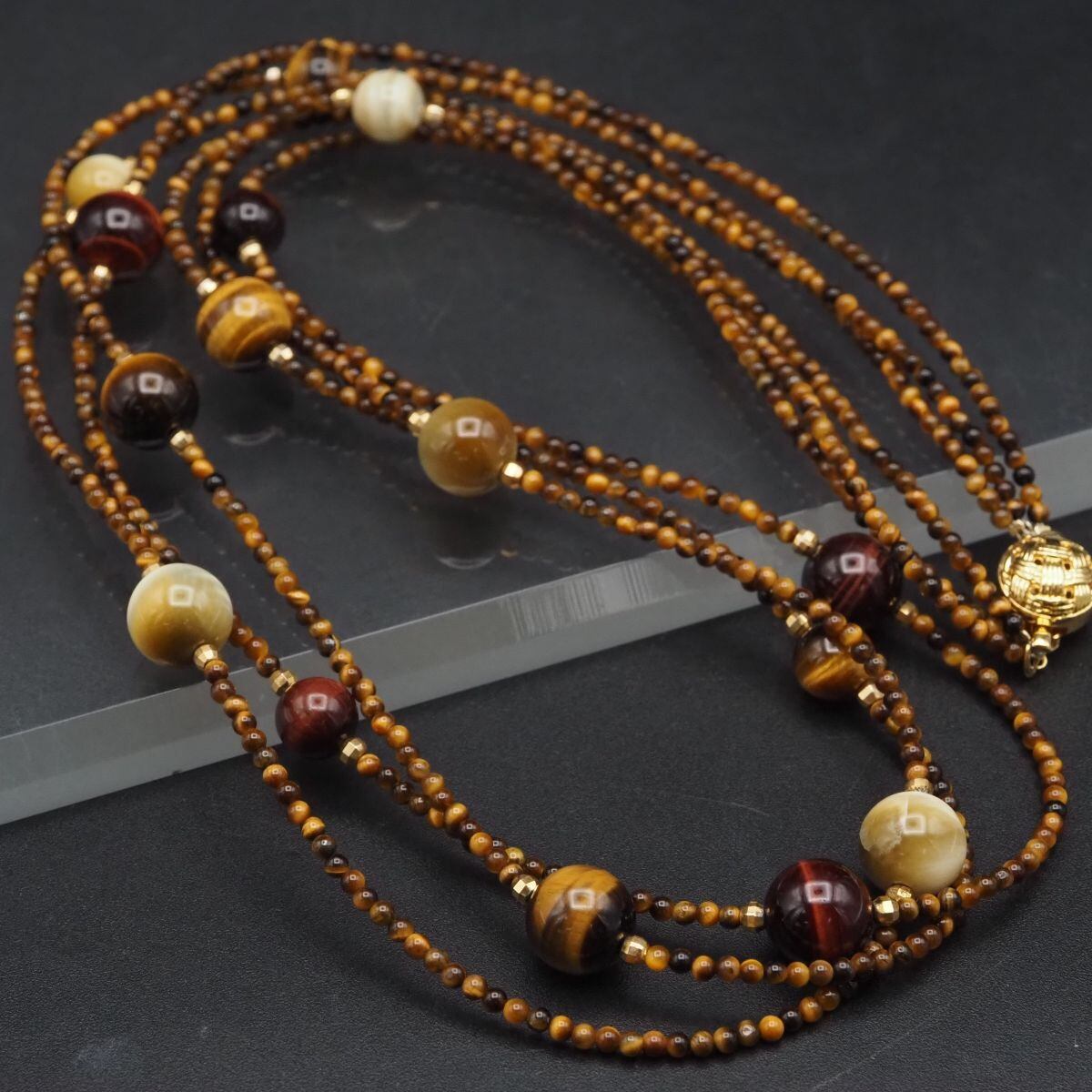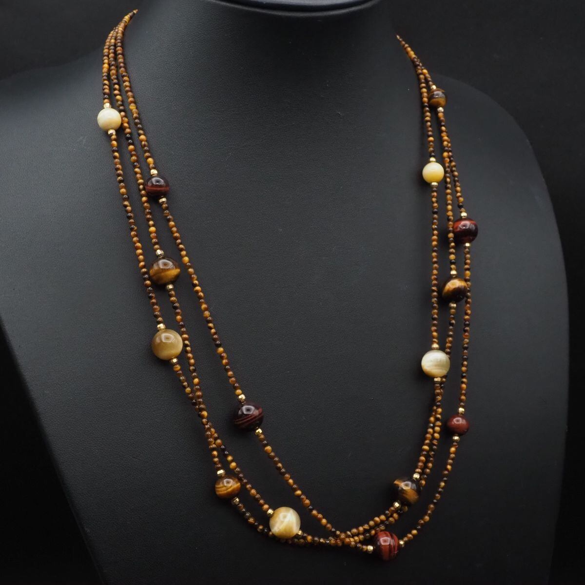 C767 タイガーアイ GSILVER刻印 ネックレス 3連 ゴールド デザイン シルバー