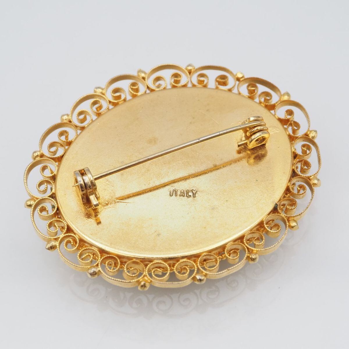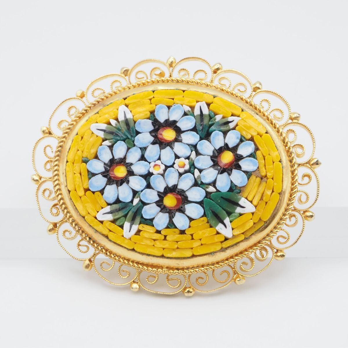 F460 モザイクガラス ITALY刻印 ブローチ フラワー フィリグリー 銀線細工 ゴールド デザイン