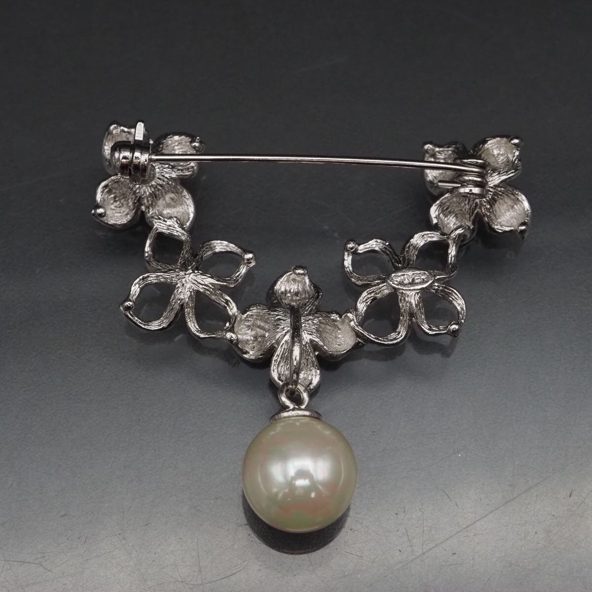 F498 フェイクパール SILVER刻印 ブローチ フラワー デザイン シルバー