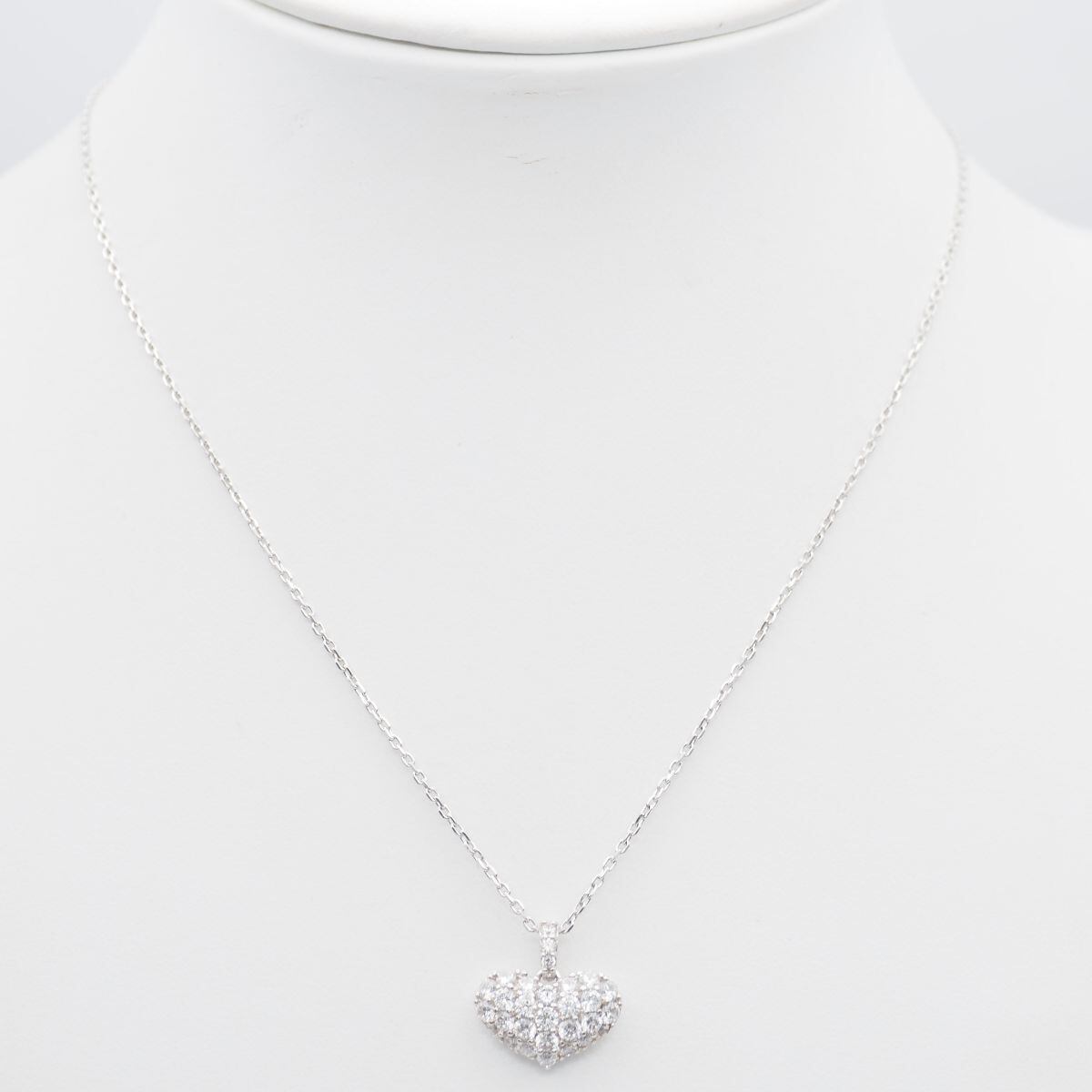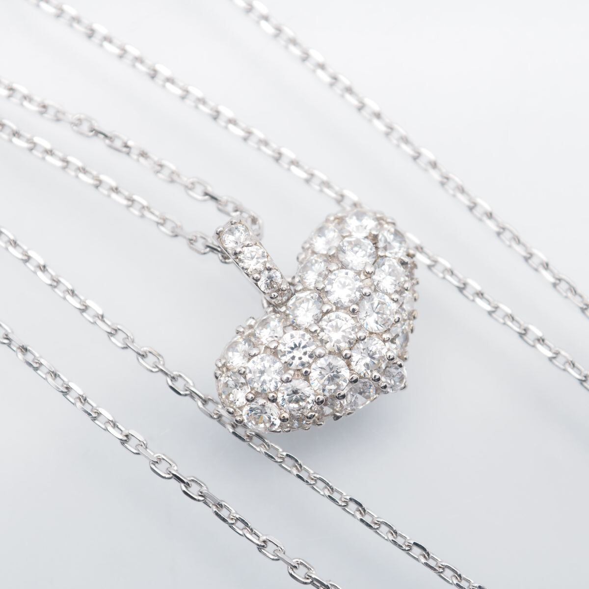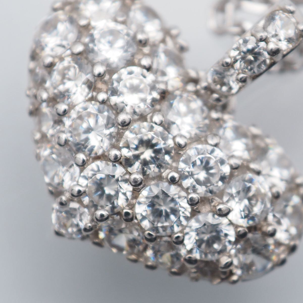 F563 ダイヤモンド風 SILVER925刻印 ペンダント ネックレス ハート パヴェ デザイン シルバー
