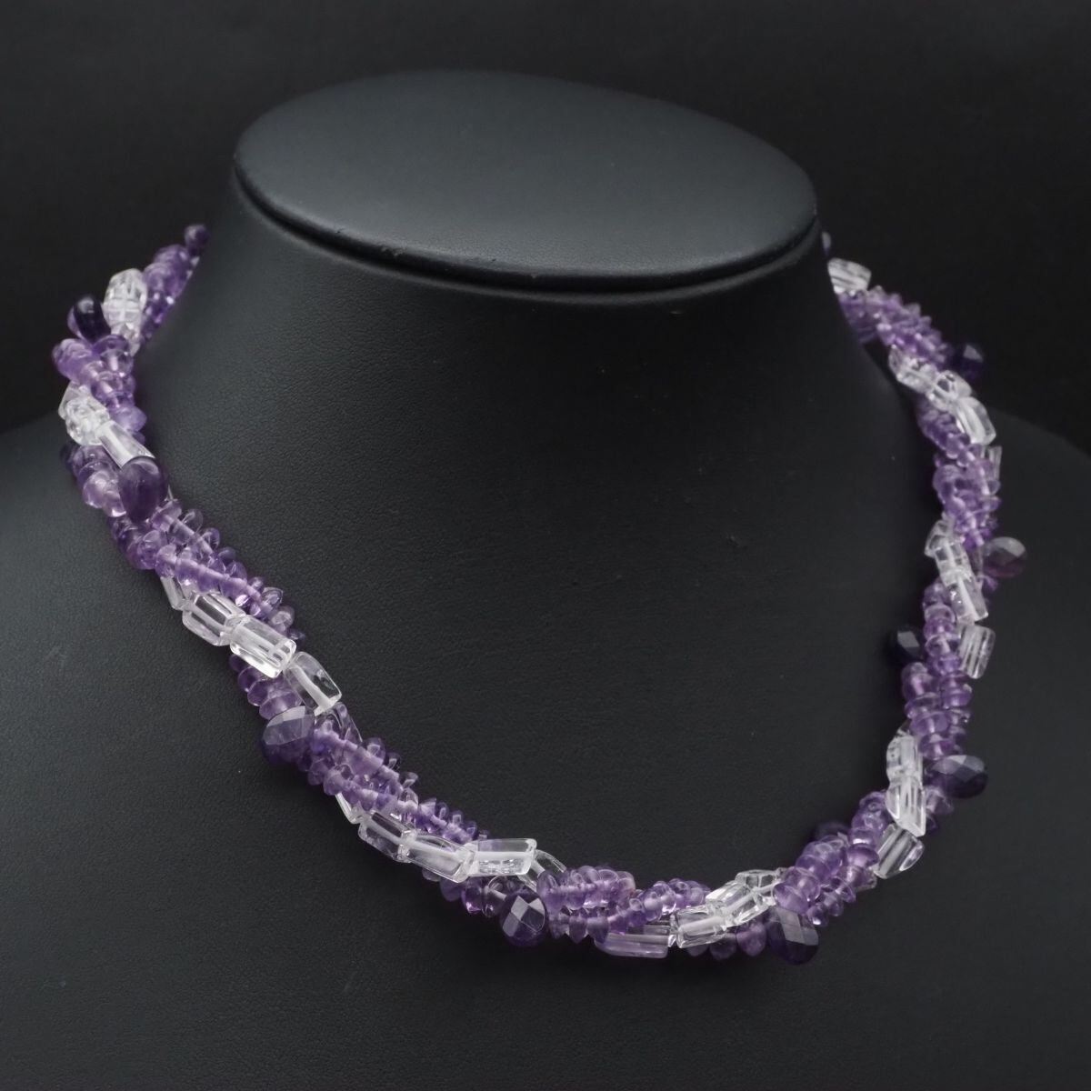 F658 アメジスト 水晶 SV925刻印 ネックレス 3連 デザイン シルバー 2月誕生石