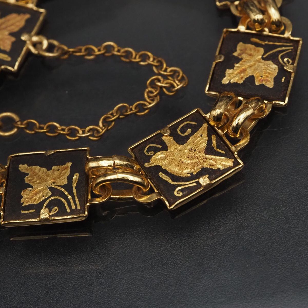 F367 金工 象嵌 e!刻印 ブレスレット 鳥花柄 ゴールド デザイン