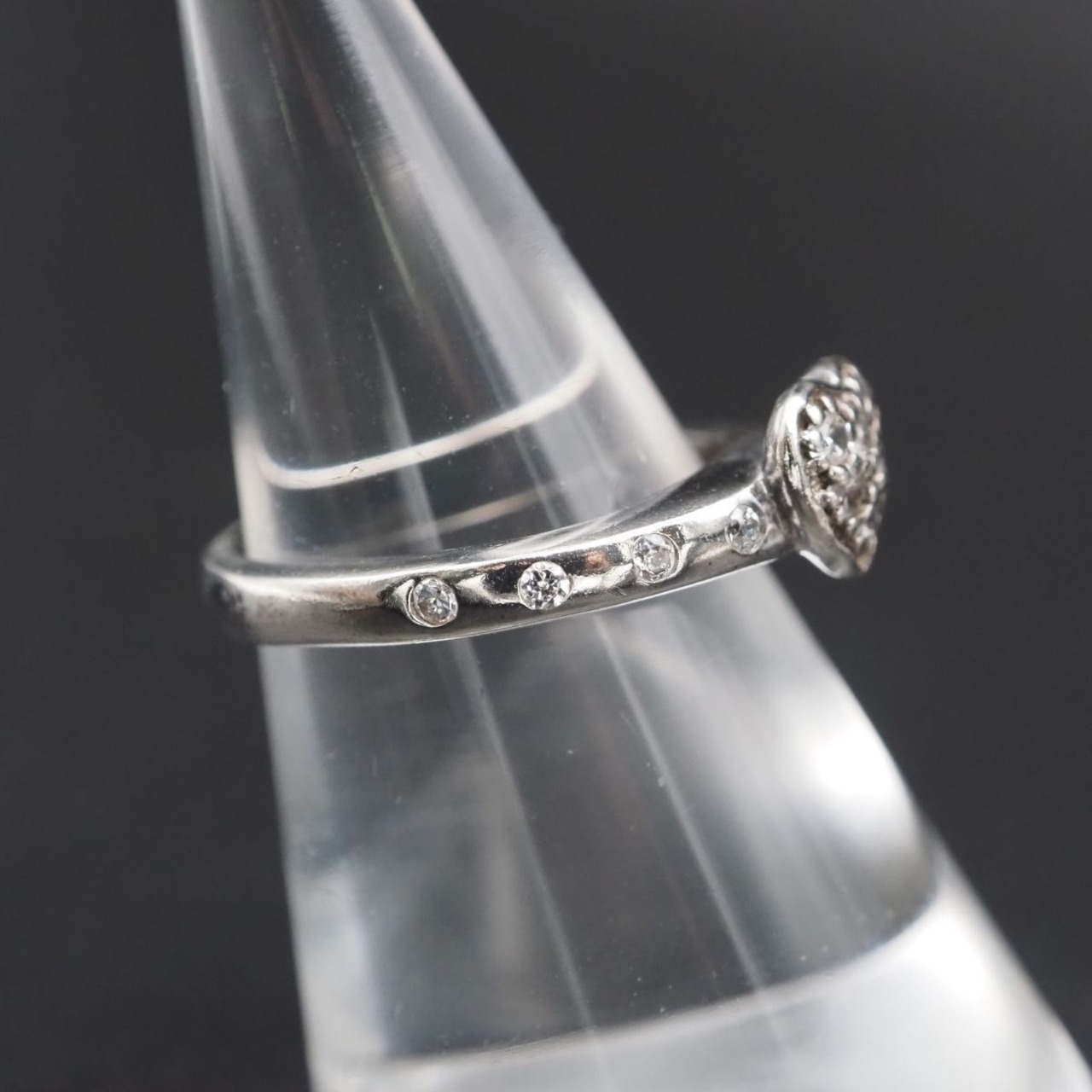 F819 Folli Follie フォリフォリ 925刻印 リング ダイヤモンド風 ハート パヴェ デザイン シルバー 指輪 10号